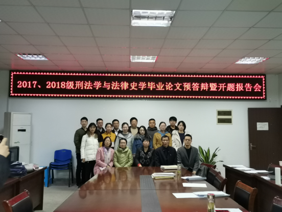 15日晚上,2018级刑法学与法律史学专业的同学参加了开题报告会。首先,各位同学对自己的选题背景及意义、国内外研究现状、研究思路及方法、研究框架、创新和不足之处作了简要的介绍。接下来,各位指导老师对各位同学在论文选题的各个方面提出了宝贵的意见,希望各位同学不仅要完成开题任务,也要认真准备,为自己的论文写作打下坚实的基础。