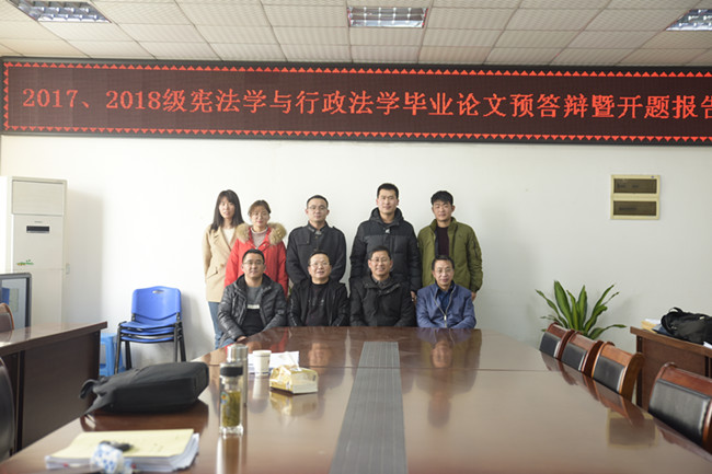 2019年12月15日上午8时30分,宪法与行政法学专业在英国上市公司365四楼会议室进行2017、2018级硕士研究生论文预答辩暨开题报告会。此次报告会分两个阶段举行,第一阶段为2017级研三员工的论文预答辩,第二阶段为2018级研二员工的开题报告。报告会由宪法学与行政法学专业硕士学位点负责人万尚庆教授主持,余俊教授、吴俊明教授、张昌辉副教授以及所有宪法学与行政法学专业的硕士研究生参加了此次报告会。