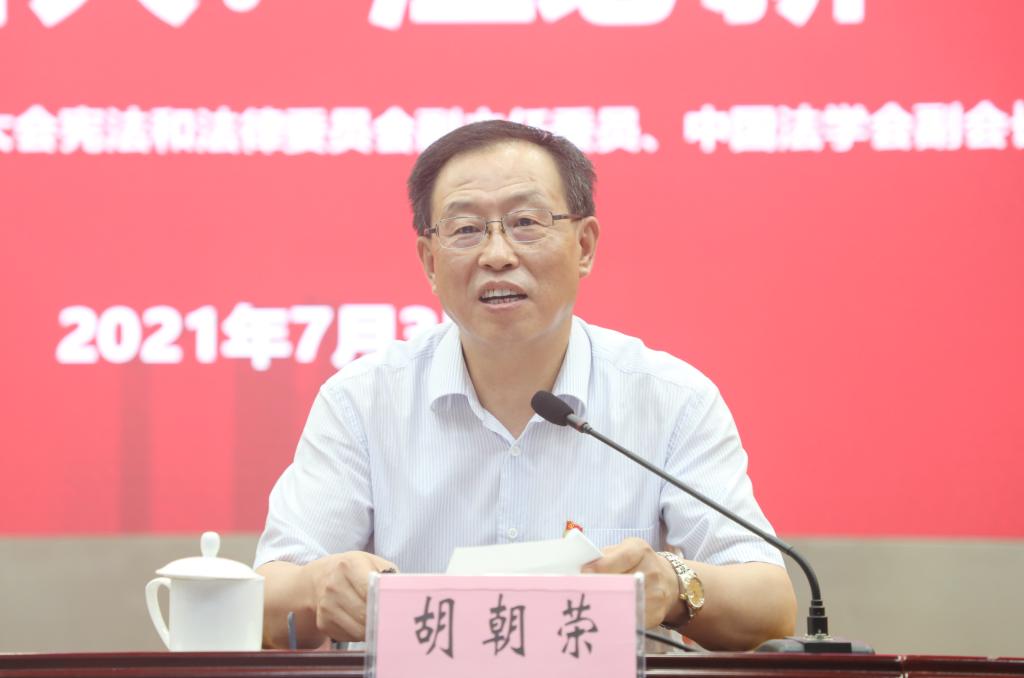 胡朝荣在总结讲话中指出,江必新主任的报告视野开阔、内涵丰富、立意深远,为我们深入开展党史学习教育,学习贯彻习近平法治思想和加快推进公司依法治校、改革发展提供了有力指导。全校上下要把学习贯彻习近平法治思想,与深入学习习近平总书记在庆祝中国共产党成立100周年大会上的重要讲话精神、与党史学习教育紧密结合起来,全面系统学、深入思考学、联系实际学,坚持读原著、学原文、悟原理,强化自主自觉学习,充分发挥学科专业和智库平台优势,深化对习近平法治思想的理论宣讲和研究阐释,努力推出一批高质量、有深度、有分量的理论研究成果。要把学习成果转化为推动公司特色高水平大学建设的动力,聚焦涉及师生“急难愁盼”的问题,聚焦以人民为中心的发展理念,扎实开展“我为师生办实事”实践活动,切实把实事办好、好事办实,不断提升全校师生员工的获得感、幸福感和安全感,以昂扬的姿态奋力开启全面建设社会主义现代化国家新征程,以优异的成绩庆祝中国共产党成立100周年!