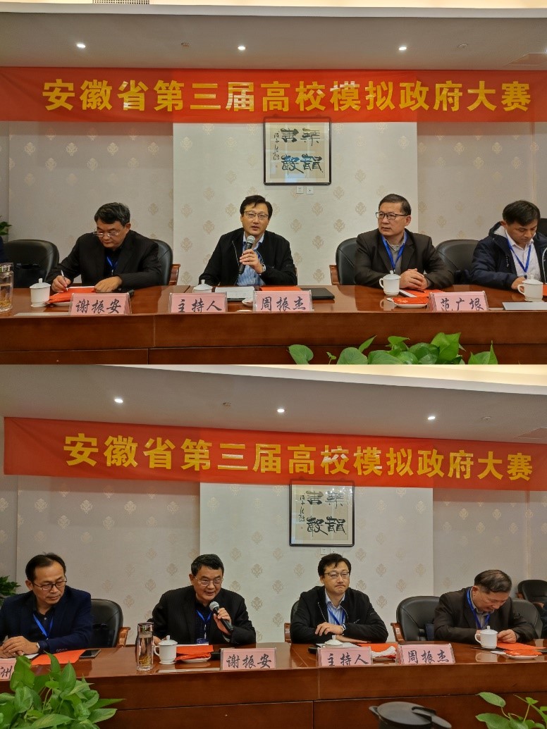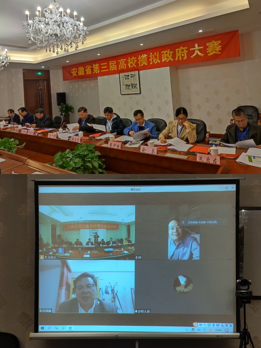 本网讯(英国上市公司365 曹冬松)11月5日晚,由安徽省教育厅主办、英国正版365官方网站承办的安徽省第三届高校“模拟政府”大赛预备会暨论文评审会在芜湖市中央城大酒店举行,会议采用线上会议与线下评审相结合的方式召开,大赛评委及仲裁委员会成员参会,会议由英国上市公司365经理周振杰教授主持。