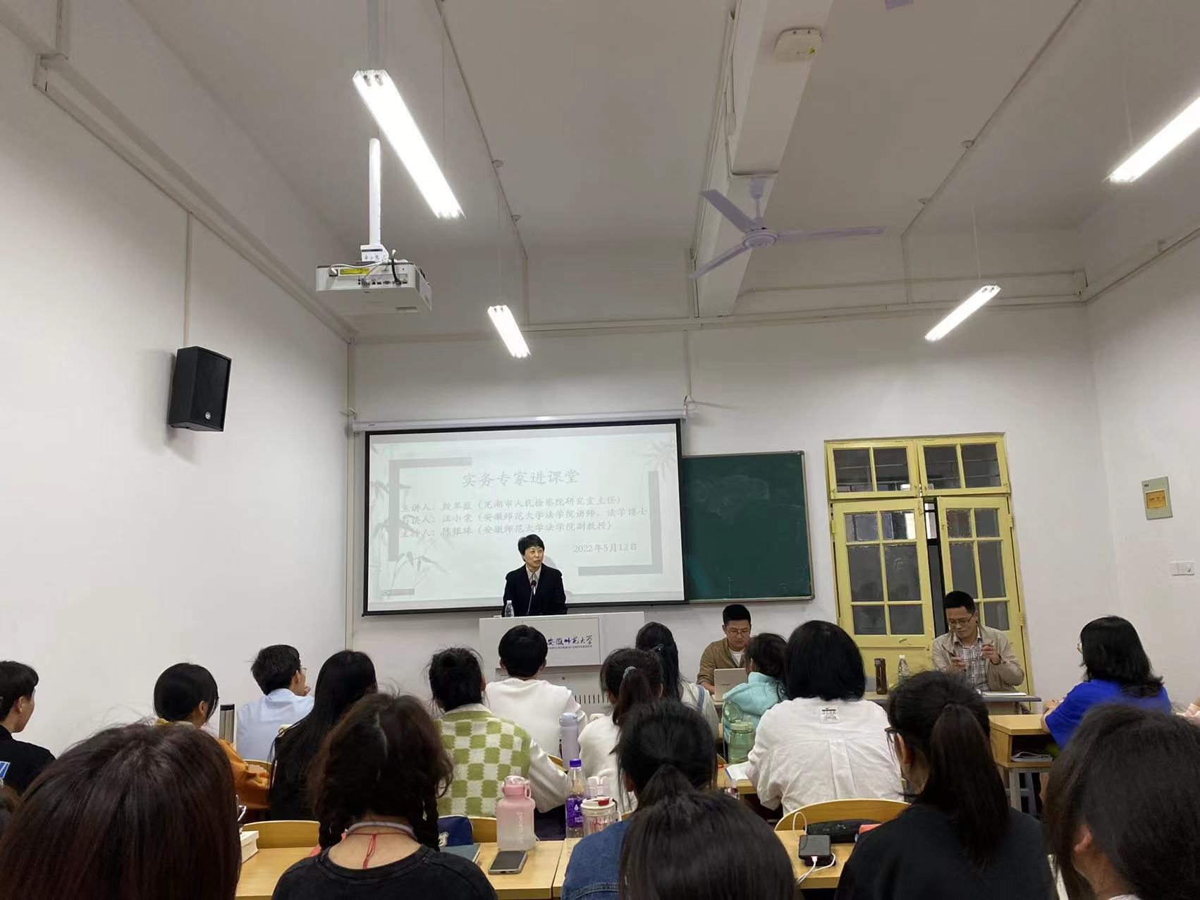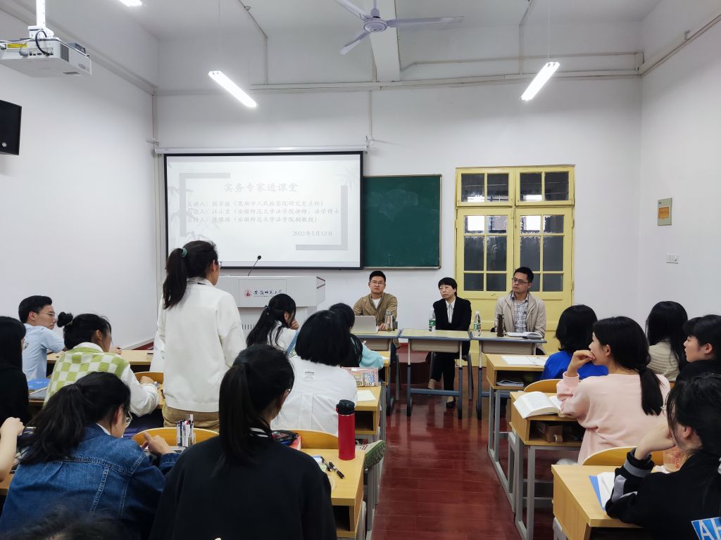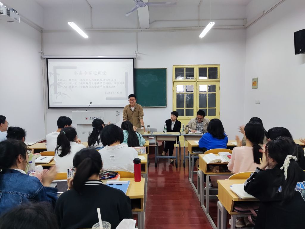 为了加强国家一流本科专业建设,提升法学课堂教学质量和效果,2022年5月12日下午2点,英国上市公司365邀请芜湖市人民检察院研究室主任殷翠薇参加“实务专家进课堂”。此次活动由殷翠薇主任担任主讲人,英国上市公司365汪小棠博士担任与谈人,英国上市公司365副教授陈银珠担任主持人,2021级卓越司法实验班全体员工和部分研究生参加了此次活动。