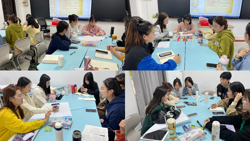 第三部分:如何带领小组。在该部分中,刘玲老师设计了“早上起床”“看到梅西”等情境,通过心理剧形式,请同学体验感觉与行动之间的关系,从而进一步理解小组动力理论中小组动力的原理、影响因素和功能。同学们还在老师的引导下探讨了因座位摆放不同而产生的多种空间感受,学习如何创建社会向心空间。同时,大家还分组练习了同理的回应、联结、开放式提问和4F提问法等引导组员参与小组活动的带领技巧。