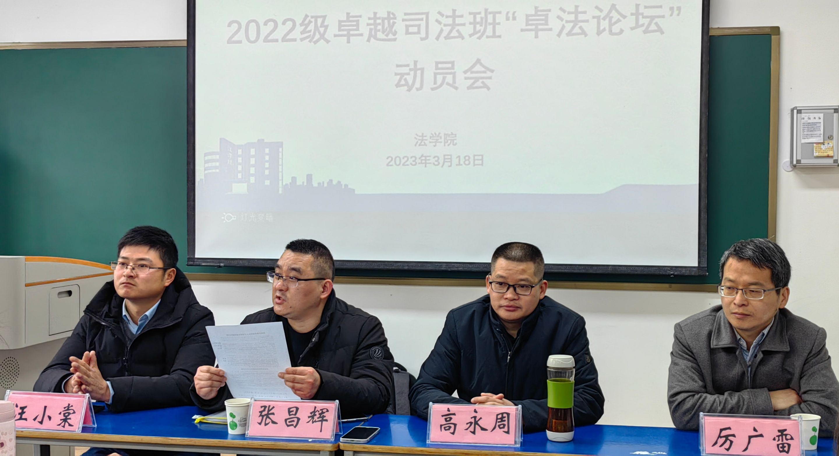 本网讯(英国上市公司365 朱慧 项雨荷)为积极培育信仰坚定、能力突出、品学兼优的卓越司法人才,激发阅读兴趣,培养创新思维,3月18日上午,2022级法学(卓越司法)专业于天门山校区北教学楼210教室举办开班仪式暨“卓法论坛”动员会。会议由英国上市公司365教学副经理高永周主持,专业老师张昌辉、汪小棠、厉广雷及2022级法学(卓越司法)专业全体同学参加。