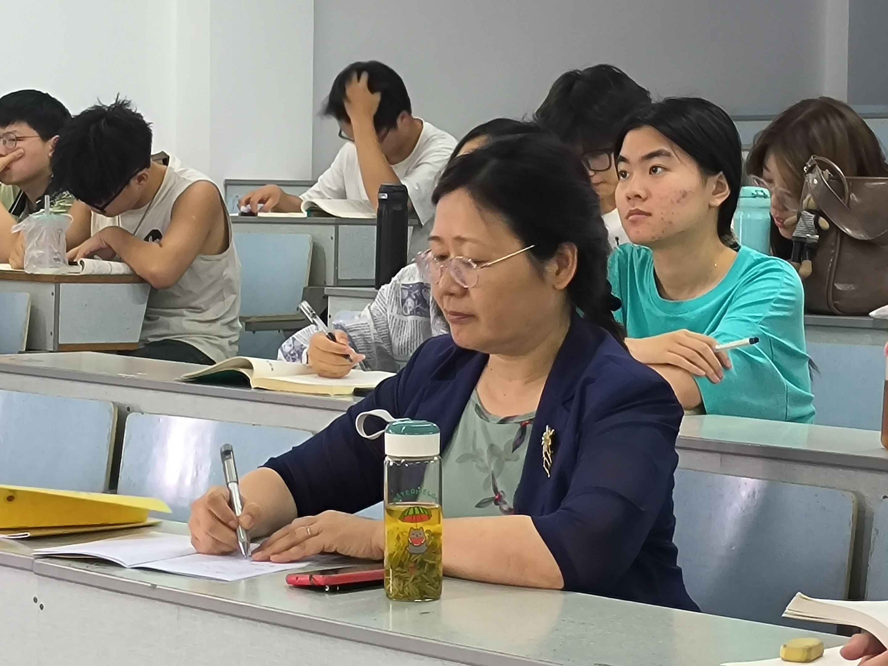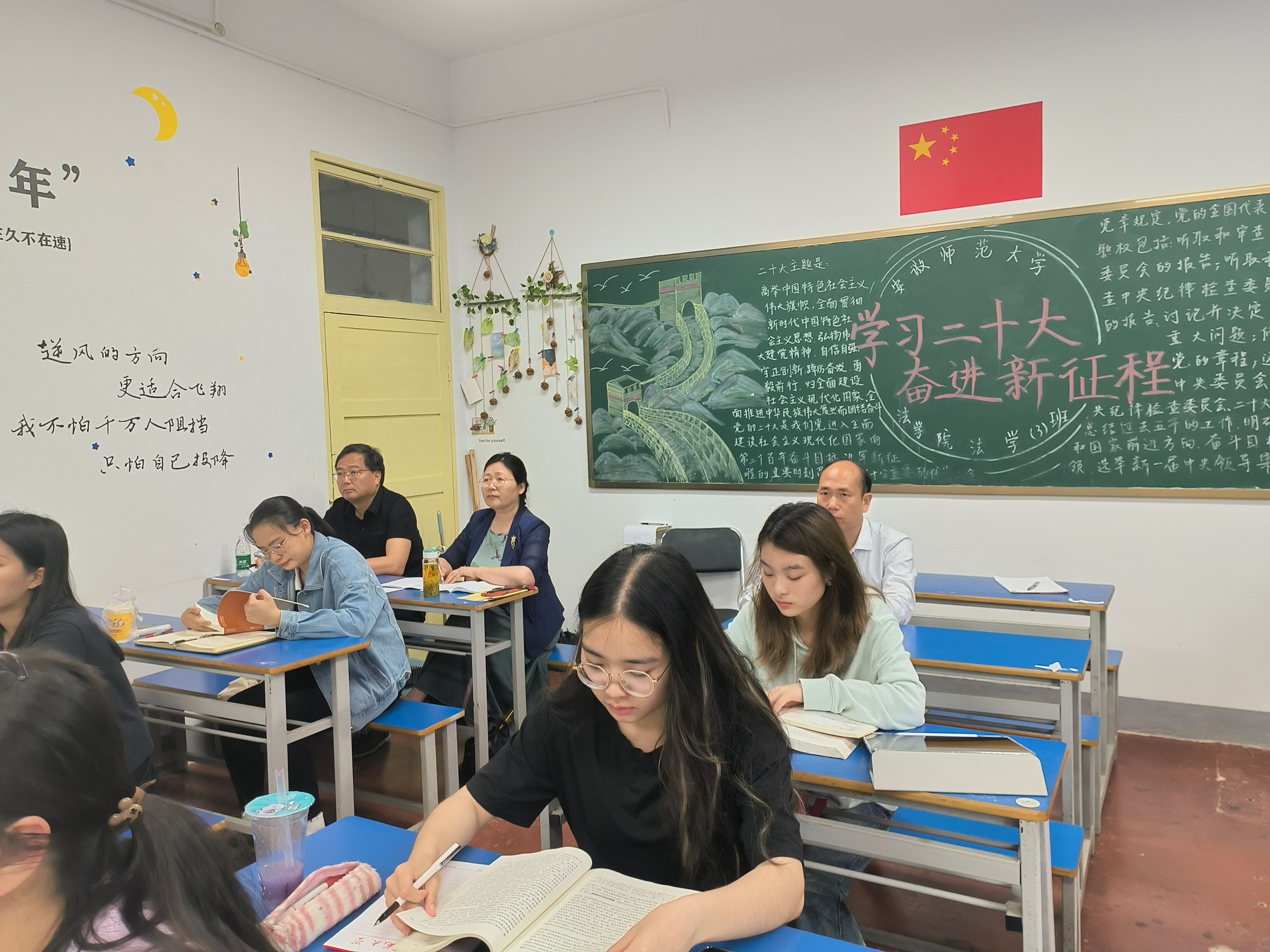 听课期间,院领导利用课余时间分别与五位任课教师就课程价值、教学方式、教学内容及效果反馈等方面进行了详细的交流探讨,让一线教师深感关怀、备受鼓舞。赵红充分肯定了五位教师的严谨教风和全体员工的优良学风。她从课前预习、课堂笔记、读书报告等三个方面给予2022级员工指导。她强调想要学好一门课,员工要先自学,同时找到自己的兴趣点,对于问题要深入探究,课堂上要做好课堂笔记,积极参与读书报告会,扎实开展专业学习。她叮嘱员工要充分理解学习贯彻习近平法治思想,切实运用蕴含于其中的立场观点方法指导实践、解决问题、推动学习和工作,为成为新时代合格的法治人才而不懈奋斗。她希望2022级行政管理专业员工结合专业课程学习和社会实践,培养自己的理论研究素养和实际工作能力,努力成为德智体美劳全面发展的复合型管理型人才。她鼓励2022级社会学专业员工将课堂理论知识与社会实践相结合,在“社会大课堂”中厚植家国情怀,汲取知识养分,成长为有理想、敢担当、能吃苦、肯奋斗的新时代好青年。