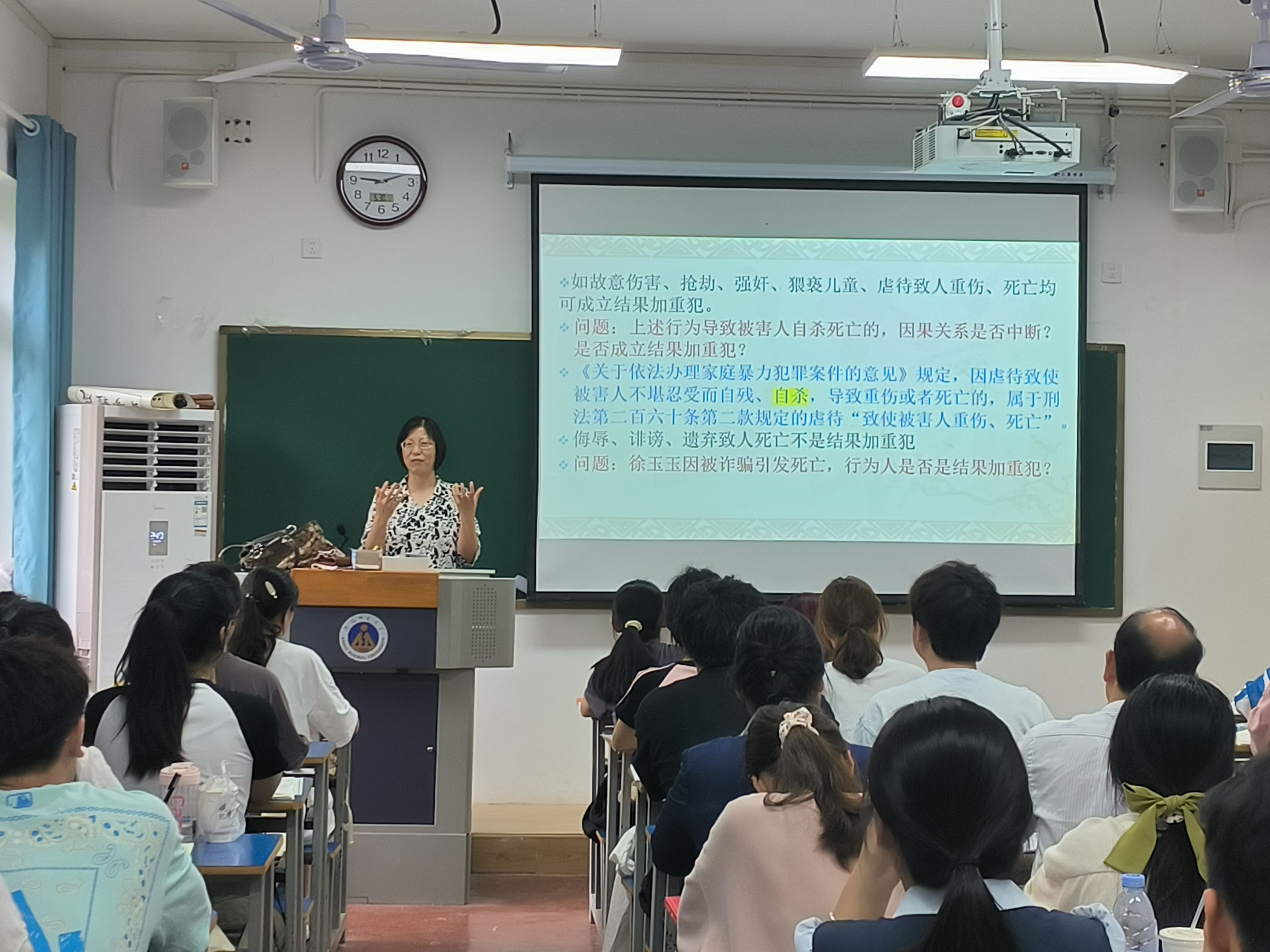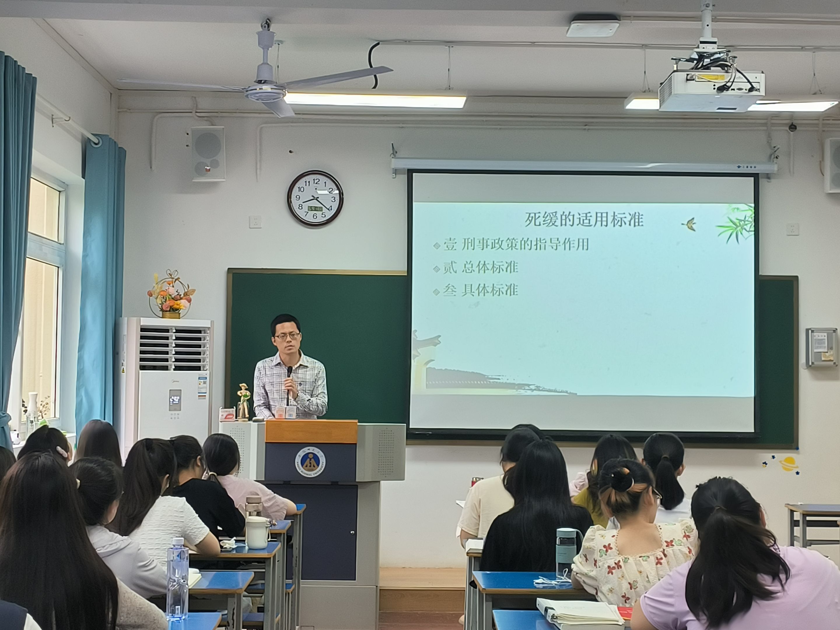 在卓越司法班的课堂上,陈银珠着重强调了死刑缓期执行制度,总体把握方针政策,步步剖析热点案件,清晰指明利害优缺。他的教学方式独特,语言风格幽默,充分调动员工的积极性,鼓励员工根据案例各抒己见,培养员工多语善辩,熟读精思的习惯。
