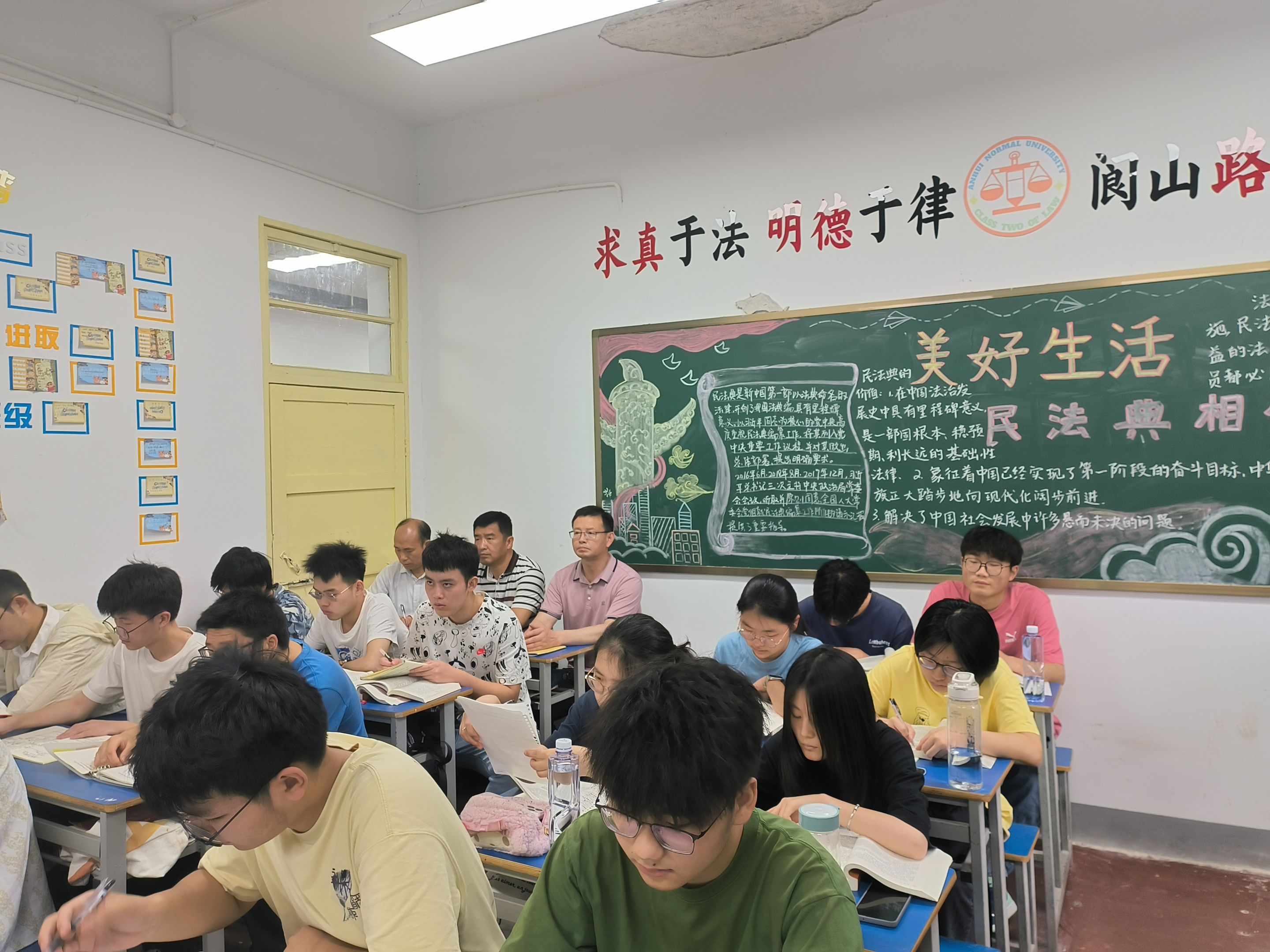 在法学一班的课堂上,雍自原根据结合案例对罪数形态展开讲解,同时又对前面所学知识进行串讲与提问,帮助同学们对所学知识进行融会贯通,课堂内容丰富,教学过程充满热情,员工听课认真专注。