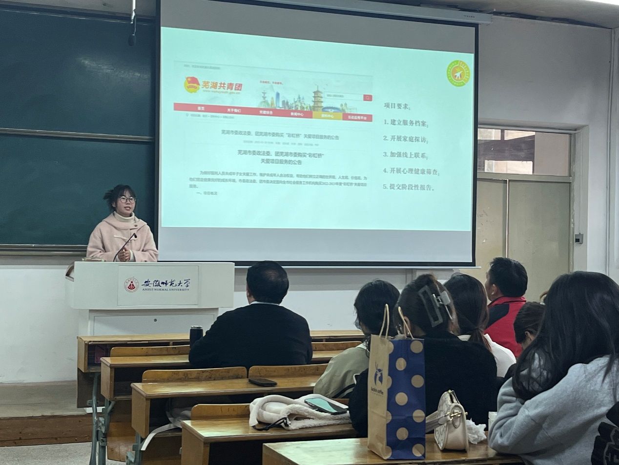 新希望社工杨玉环为同学们介绍了社工机构参与“彩虹桥”项目的服务流程,典型案例以及王杰老师对项目的督导和评估情况,和同学们分享了社工机构参与项目的过程、注意事项以及做好项目服务的经验体会。在分享的过程中,她邀请同学们对项目运行中的问题进行互动,提高了同学们对社工项目运行的了解以及对项目督导评估重要性的认知。