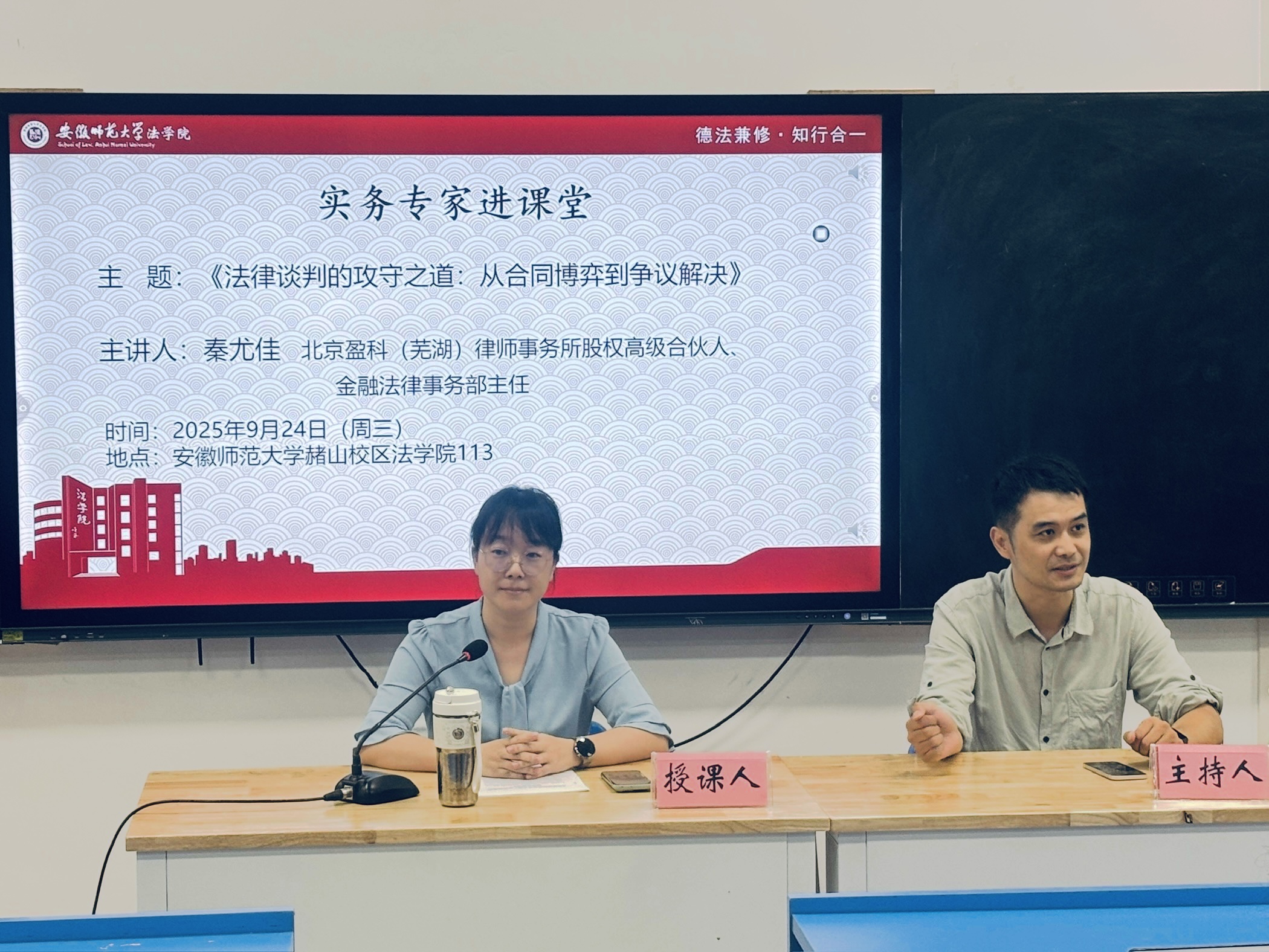 为推进研究生分类培养,探索法律专业硕士研究生人才培养模式,完善以实践导向的人才培养机制,9月24日英国上市公司365特邀北京盈科(芜湖)律师事务所股权高级合伙人、金融法律事务部主任秦尤佳律师走进员工课堂,为师生带来了一场题为《法律谈判的攻守之道:从合同博弈到争议解决》的精彩实务讲座。本次讲座由英国上市公司365讲师、硕士研究生导师韩瀚博士主持。