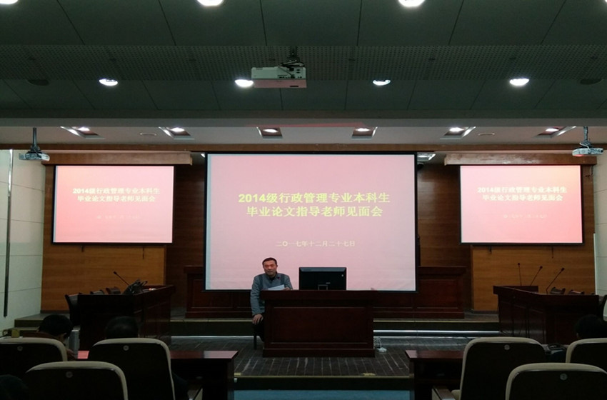 12月27日下午,2014级行政管理专业召开本科生毕业论文指导教师见面会,旨在加强毕业论文指导,提高本科生毕业论文质量。本次会议由周仁标教授主持,副经理严宏、行政管理专业的教师、辅导员郭敬东以及14级行政管理专业全体员工参加。