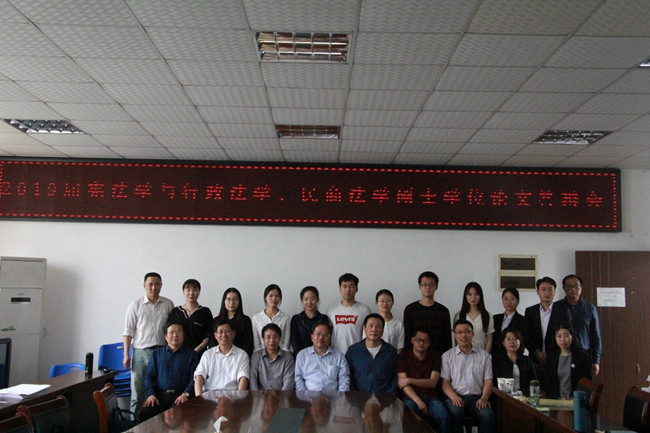 答辩会分为四个环节。首先,每位答辩的同学以PPT的形式简要汇报自己论文的内容,突出表达论文的闪光点,然后由答辩委员会成员以及答辩主席依次对论文的选题、理论框架、创新能力、用语表达以及文献资料的规范运用等方面提出了问题和修改建议,接着,毕业生依次就答辩委员会提出的问题进行答辩,并虚心接受老师们的修改意见。最后,所有同学回避,老师填写表决票,由答辩委员会主席蒋传光教授宣布了评议结果,2019届宪法学与行政法学、民商法学硕士研究生全部通过答辩。