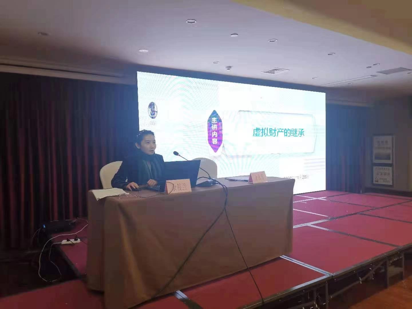 余筱兰结合网络信息法学领域的前沿问题,作了“虚拟财产的继承”和“个人信息保护”两个主题授课。在“虚拟财产的继承”授课中,余筱兰从分析微信、qq、网络游戏、电子邮件是否为虚拟财产开始,以淘宝网店继承案为导入,从法学理论上解释虚拟财产的内涵和特征,并详细介绍和解释了国内外司法实践中对虚拟财产纠纷案件的处理方法,最后结合我国《民法典》关于虚拟财产、数据财产的规定,对授课中提到的案例予以解析。