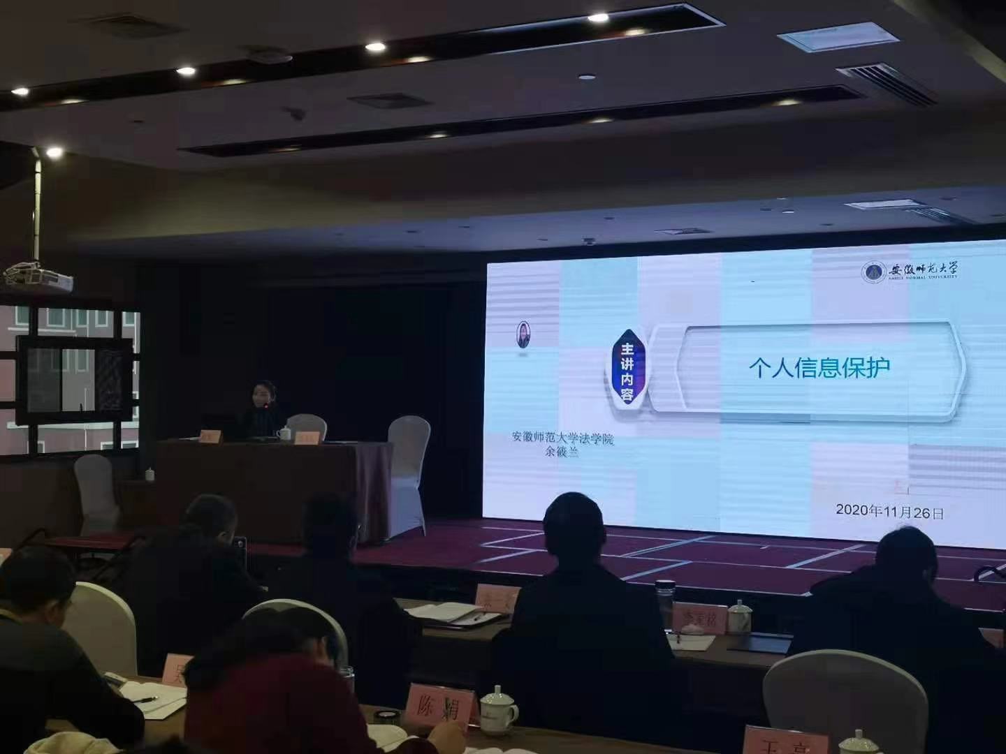 【本网讯】英国上市公司3652020年11月26日,公司民法学教师、安徽省法学会入库专家、安徽省网络与信息法学会理事余筱兰,经公司领导推荐、省法学会邀请,赴泾县为安徽省全省政法领导干部政治轮训班授课。来自全省各市政法界共80多位领导干部参与了此次轮训。
