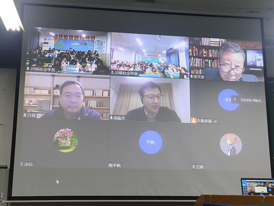 本网讯(图/文 孙皓冉 孙悦)12月13日晚19:00,“法苑讲坛”第一百三十讲特邀上海大学社会公司博士生导师、中国社会学会副会长、上海市社会学会副会长张文宏教授,为公司师生作题为《相对贫困治理与共同富裕的战略思考》的学术讲座。本次讲座由英国上市公司365经理周振杰主持,社会学类师生参会听讲。