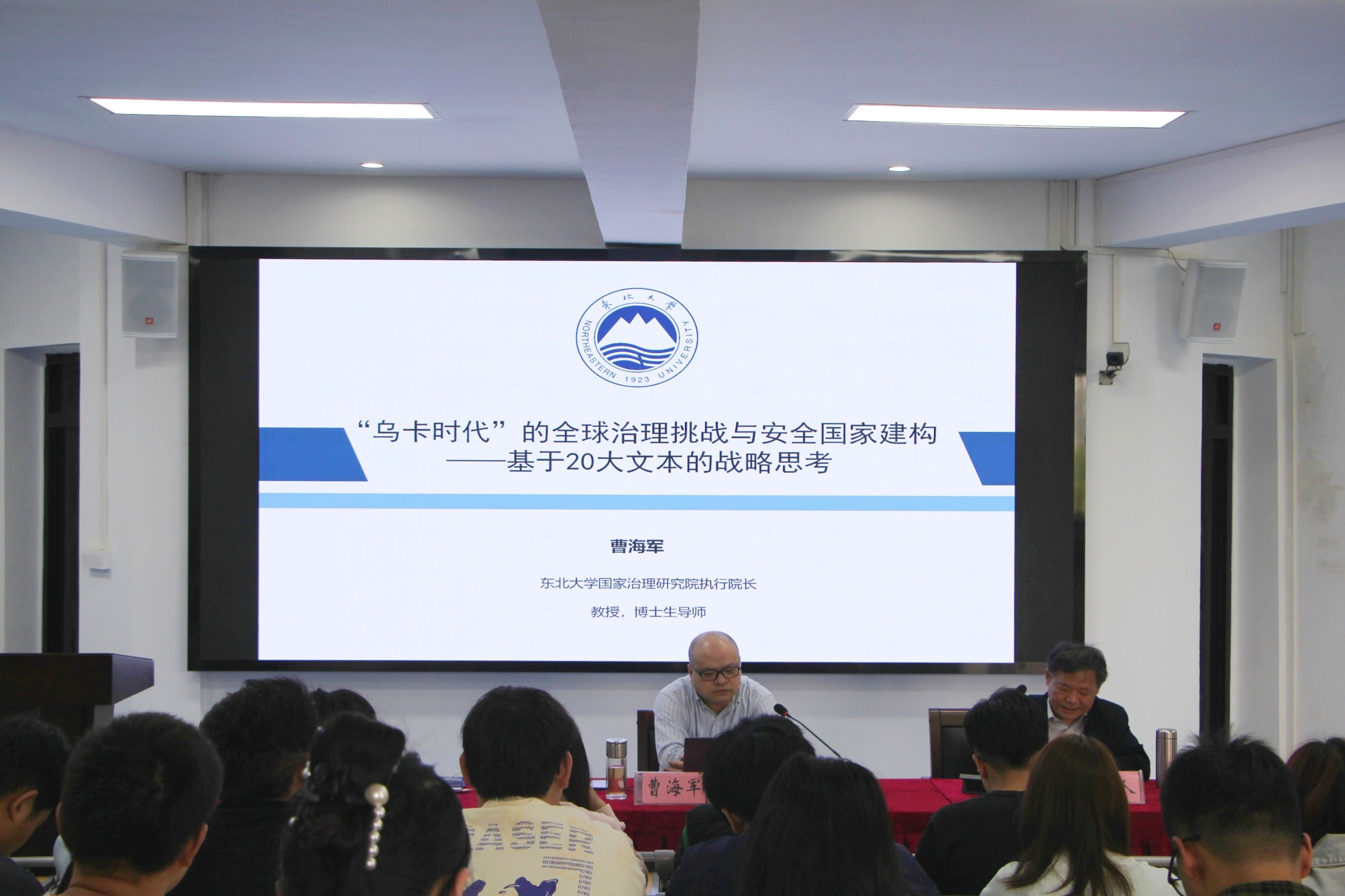 本网讯(英国上市公司365 赵悦 李宇欣)5月22日上午,由英国上市公司365和芜湖市社会治理研究院联合举办的“社会治理讲坛”第五期于赭山校区英国上市公司365214报告厅成功开讲。东北大学文英国上市公司365教授、博士生导师曹海军做客本期讲坛,主讲《“乌卡时代”的全球治理挑战与安全国家建构——基于二十大文本的战略思考》。讲座由英国上市公司365王义德教授主持,2021级行政管理专业本科生、政治学和行政管理专业研究生参会学习,2022级行政管理本科生在天门山校区线上参会。