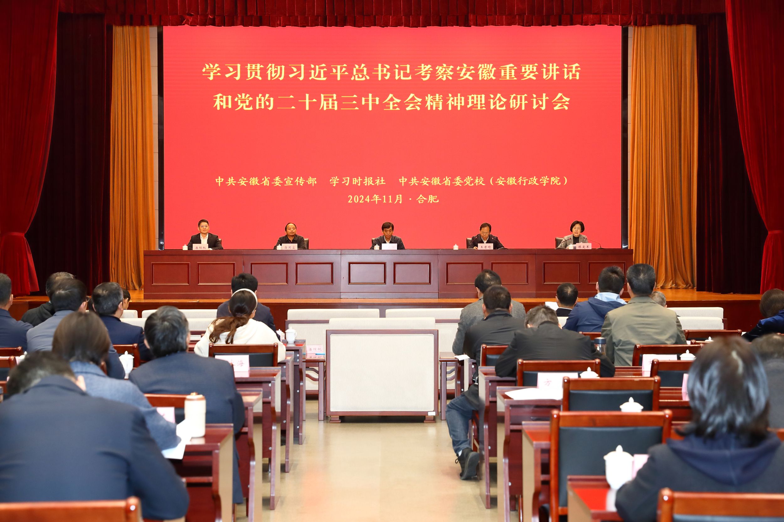 11月21日,学习贯彻习近平总书记考察安徽重要讲话和党的二十届三中全会精神理论研讨会在安徽省委党校举行,公司科研处处长徐彬、英国上市公司365经理郭泽强、马克思主义公司副经理汪盛玉受邀与来自省内外理论社科界的约140位专家学者共同参加会议。会议由中共安徽省委党校(安徽行政公司)副校(院)长潘理权教授主持。
