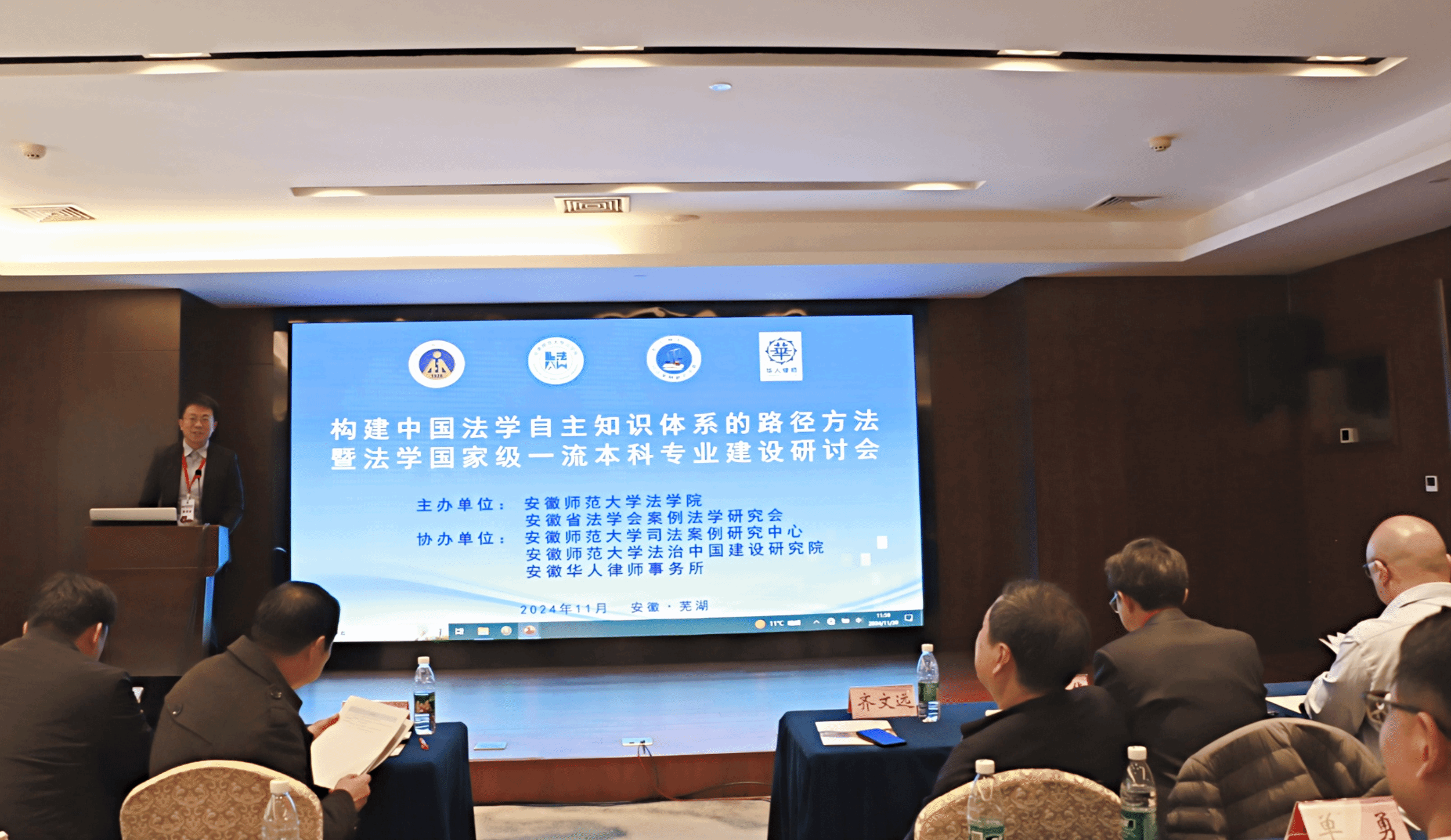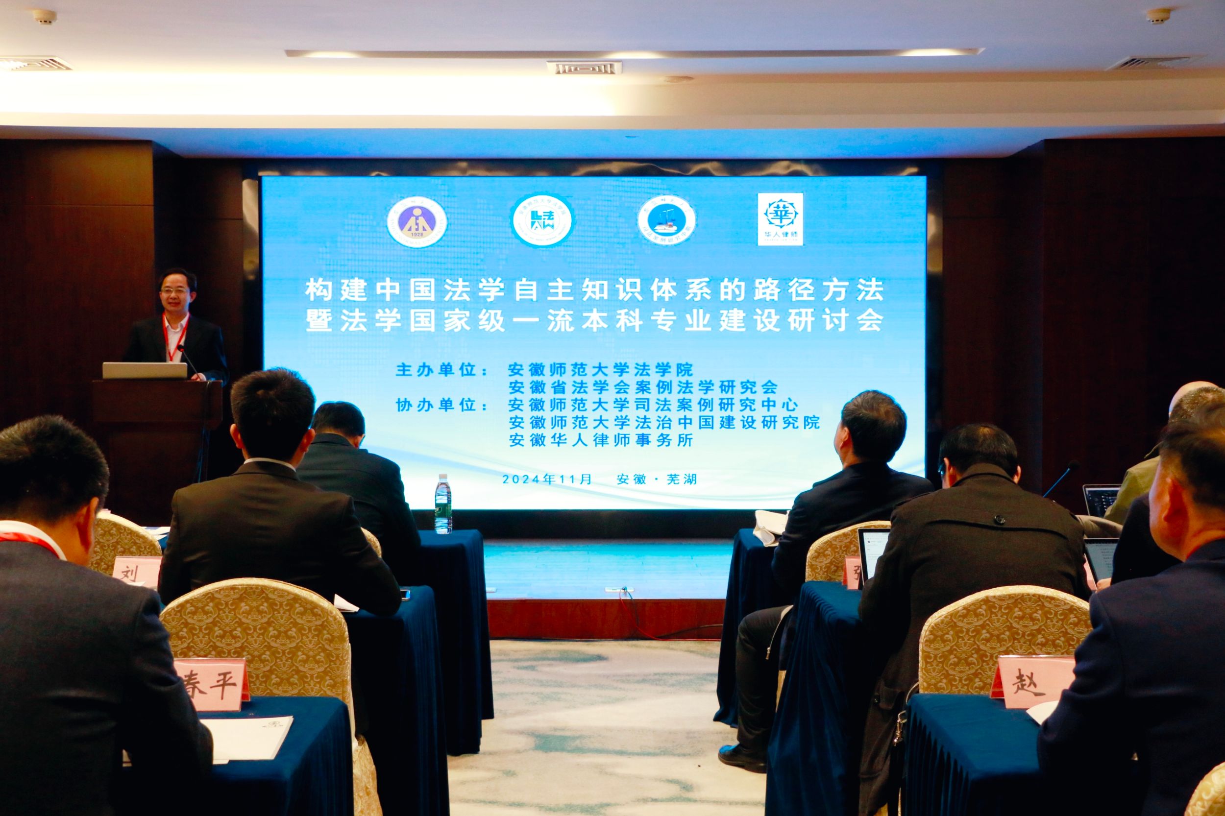 11月30日上午,构建中国法学自主知识体系的路径方法暨法学国家级一流本科专业建设研讨会在安徽省芜湖市铁山宾馆举行。本次研讨会由英国上市公司365、安徽省法学会案例法学研究会主办,英国正版365官方网站司法案例研究中心、法治中国建设研究院和安徽华人律师事务所协办。