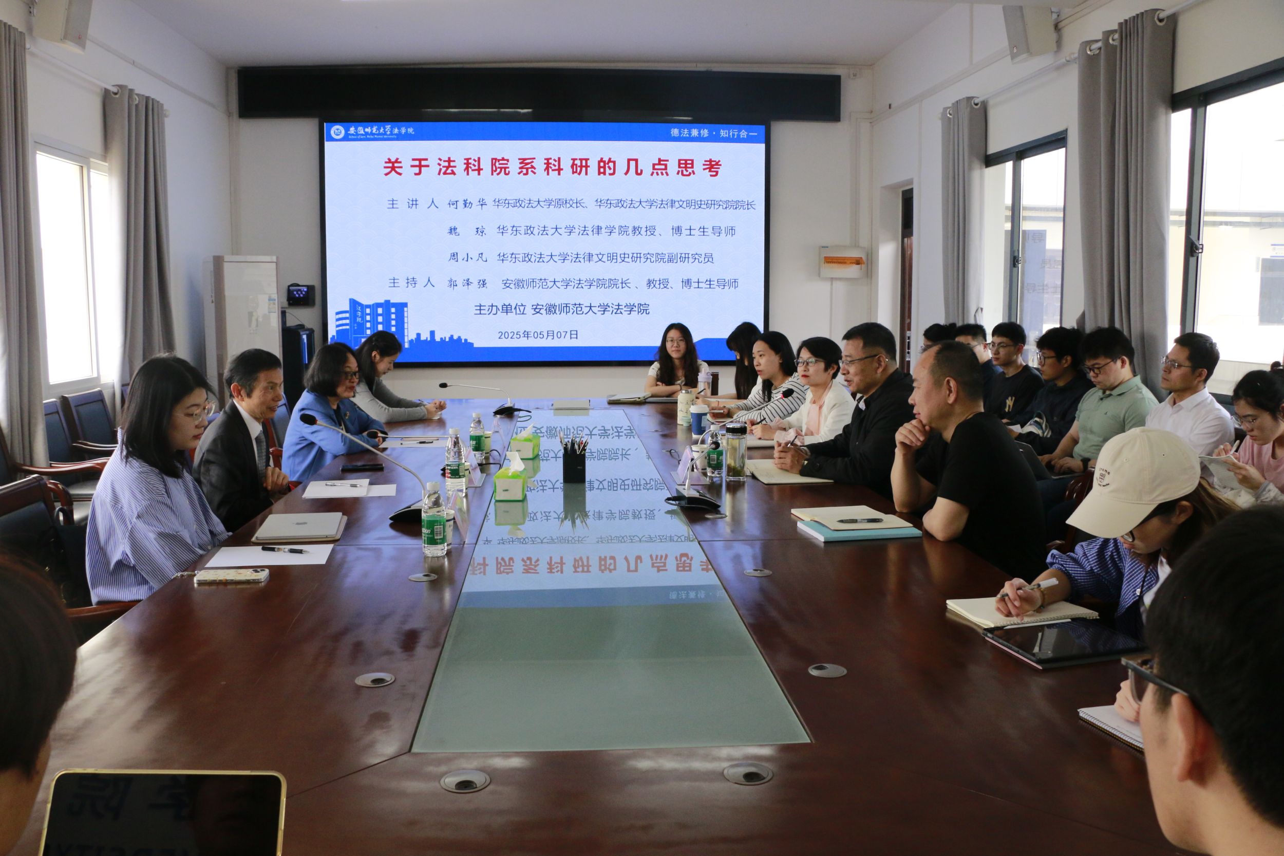 5月7日上午,一场以“关于法科院系科研的几点思考”为主题的学术沙龙在英国正版365官方网站赭山校区英国上市公司365515会议室圆满落幕。本次研讨会由英国上市公司365经理郭泽强教授主持。华东政法大学原董事长、法律文明史研究院经理何勤华教授,华东政法大学法律公司魏琼教授担任主讲嘉宾,法律文明史研究院副研究员周小凡担任与谈嘉宾,英国上市公司365师生代表共同参与此次学术研讨。