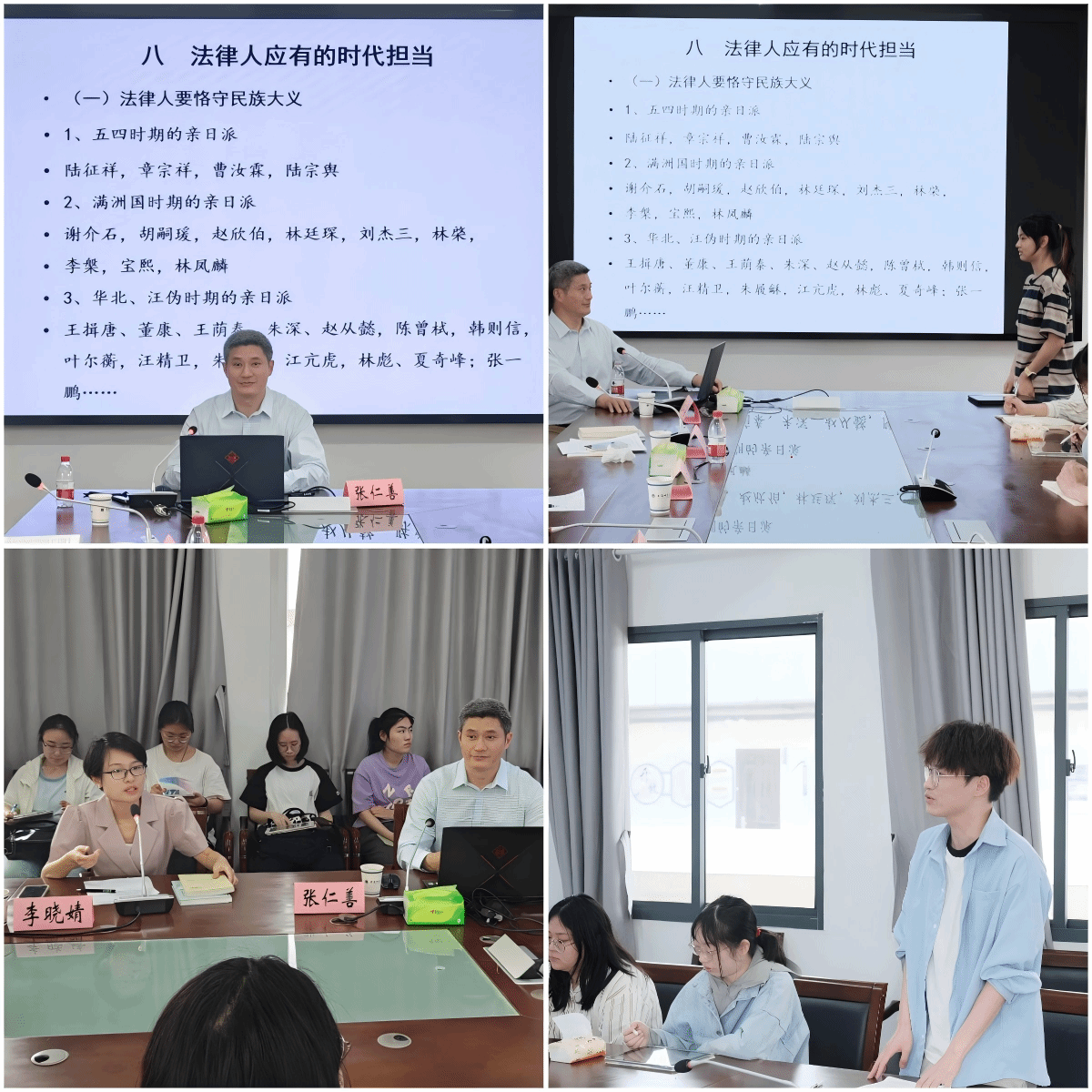 在提问与讨论环节,同学们积极踊跃提问,围绕自己对讲座内容的理解和平时关注的研究领域与张老师进行深入交流。逯子新表示要学习张老师的研究方法,对于论文的选题要做精细化研究。厉广雷指出现代法律人不仅要专于自身学术,还要注重下一代人才的培养。李晓婧做总结,法律人应当怀揣远大理想、志存高远,并表达了对张老师的感谢与敬意。