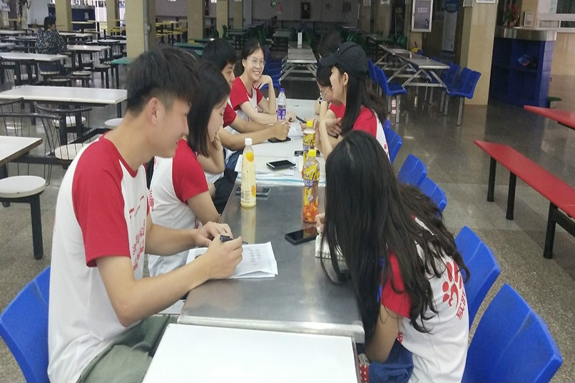 7月12日,团队成员于一食堂二楼开了最后一次会议,杨带娣队长对这几天大家的表现作出客观评价,并对这短短时间的调研结果作出总结,随后每位成员轮流发表感言,分享所闻所感。