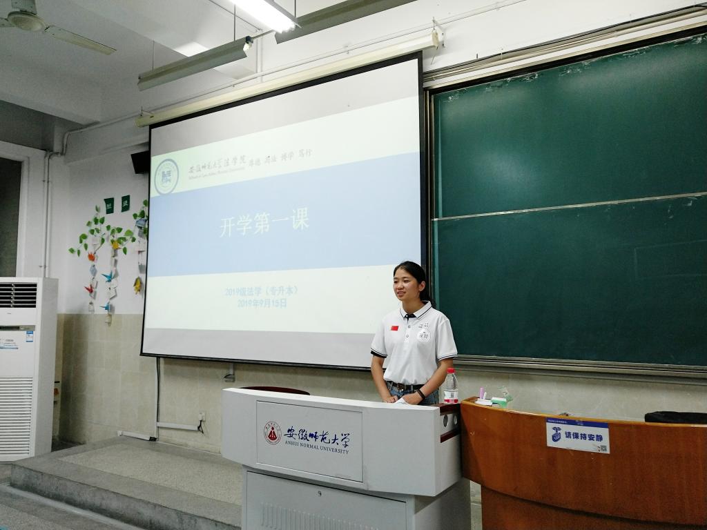 2019年9月15日晚19:00,英国上市公司3652019级法学专业(专升本)在行知楼1号楼504教室召开“踏上新征途,翻开新篇章”新生主题班会,会议由辅导员朱慧主持,全体2019级法学专业(专升本)同学参加班会。