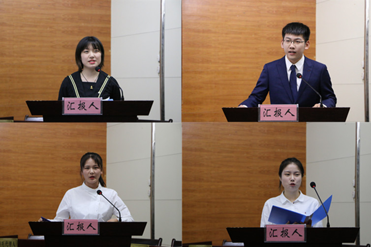 大会伊始,主持人介绍本次竞聘的规则及流程。共有26人参与本次竞聘,来自17级的2名员工分别竞聘团委员工副书记和员工会副主席职务,来自18级的24名员工竞聘团委委员、员工会正副部长职务。本次竞聘分为PPT汇报和答辩两个环节,竞聘员工团委副书记和员工会主席团者进行不超过5分钟的PPT汇报,竞聘团委委员、员工会正副部长者则进行不超过3分钟的PPT汇报 ,各选手答辩环节时长均为2分钟。在PPT汇报环节中,各位选手从个人情况、工作经历、竞聘优势、未来工作展望等方面展开汇报,他们满怀信心、仪态得体、语言流畅,PPT简洁美观;在答辩环节中,选手们面对老师们和学长学姐提出的问题反应迅速、礼貌地做出回答。竞选结束后,工作人员发放选票,到场人员综合各选手的平时工作表现和竞聘表现进行不记名投票。本次竞选将本着公平、公正、公开的原则,基于投票结果确定最终人选,并于近日公开竞选结果。