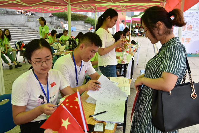 此次迎新工作依旧采用了全程一站式服务,在图书馆东广场的迎新场地上搭建了服务台,有醒目的指示标记。新生到达英国上市公司365服务台后就有志愿者的热心引领,从核对材料到发放饭卡钥匙手册等物资以及物资领取登记等事项都有志愿者的身影,切实做好新生的服务工作。