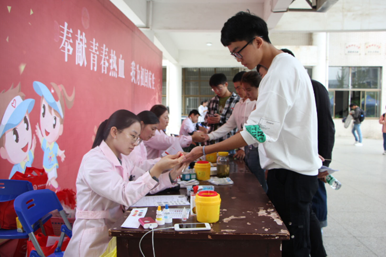 献血活动正式开始之前,公司全力配合公司安排,在各年级及班级大力宣传,细心叮嘱员工献血的相关注意事项,提前通知有意者填写信息登记表,在引导员工主动参与此次活动的同时也要量力而行,充分体现了公司对员工身体健康的关怀以及对社会公益实践活动的重视。正午时分,员工们自觉地在老员工活动中心排起长队,依次进行信息录入、血液类型检验、静脉采血等环节。员工在完成献血后,回到服务台进行登记并领取献血证和纪念品,校志愿服务工作人员及时为献血者送来糖水补充营养,公司和公司的通力配合为献血工作的顺利开展提供了全方位的保障。员工们手持献血证,脸上洋溢着笑容,为鼓励更多员工踊跃参与公益活动起到了榜样示范作用。