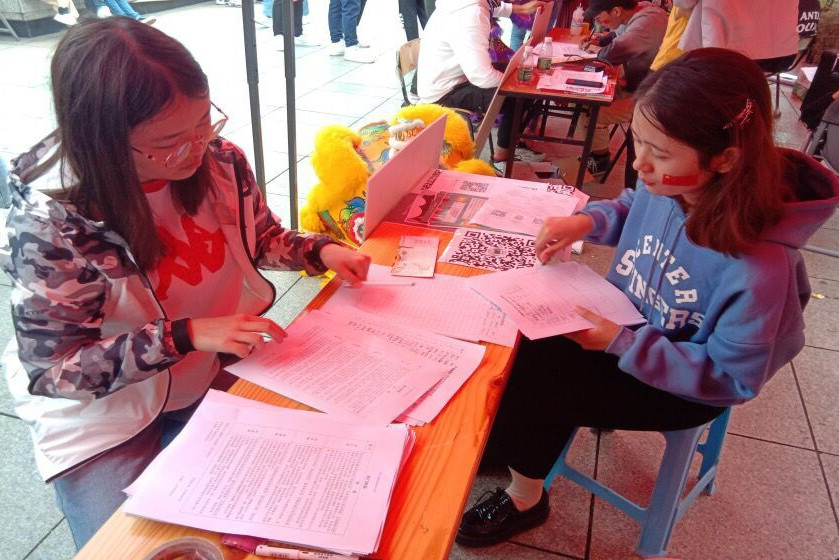 在招新活动过程中,工作人员饱满热情、认真负责,尽最大努力为每一位前来报名的同学提供最优质的服务。经过一天的努力,外交协会成功招收近一百名正式会员,出色完成目标,招新活动圆满结束。