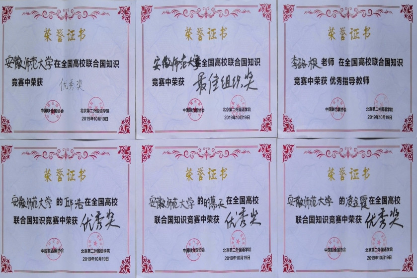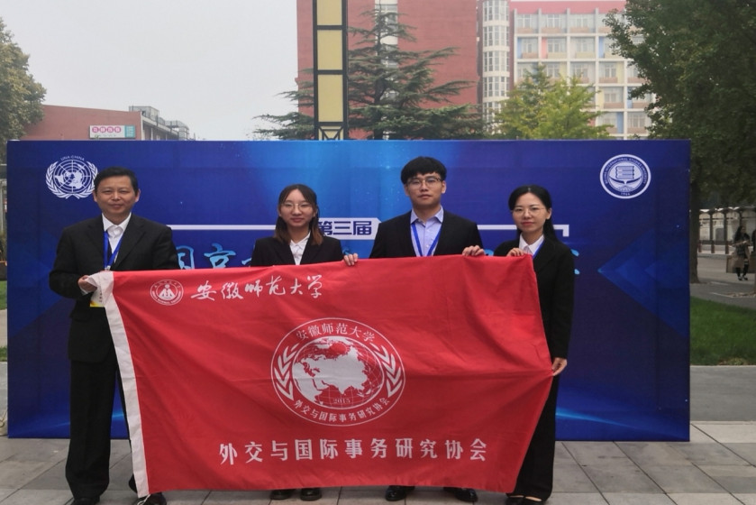 10月19日,第三届全国高校联合国知识竞赛在北京第二外国语公司正式开幕。安徽师大外交协会经过选拔,派出由邱浩(18研)、时慕天(18研)与凌金霞(17法)同学组成的代表队,由指导老师李路根带队参赛,卢路老师进行学术支持。