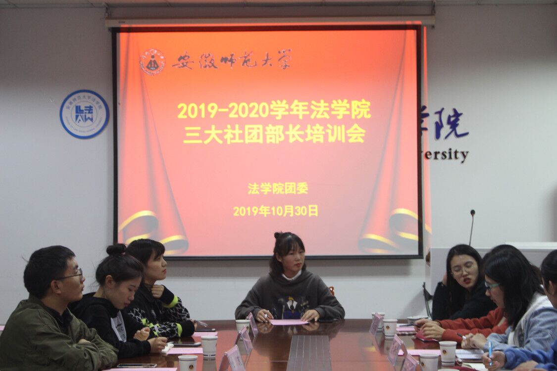 10月30日晚,英国上市公司365团委在公司行政楼四楼会议室召开三大社团部长培训会。团委员工副书记兼员工会副主席姚思宇、第六届团委社管部部长胡月、副部长杜欢、团委宣传委员黄雅倩、素质拓展委员万针利和英国上市公司365三大社团会长团出席会议,院员工会宣传部和实践公益部全体委员、英国上市公司365三大社团各部门部长及各班级宣传委员到场参会,本次会议由社团工作委员许芳芳主持。