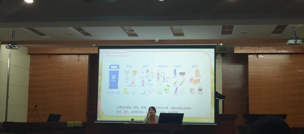 活动伊始,冯晟介绍了校园生活垃圾分类管理工作将于12月彻底落实,并积极鼓励全体同学们共同参与校园生活垃圾分类“攻坚战”中。接着,冯晟对本次公司采取的垃圾分类方法进行具体说明,她提出将采取可回收物、有害垃圾、餐厨垃圾、其他垃圾“四分法”对校园里的生活垃圾进行分类管理,同时还给大家列举了一些常见的垃圾归类误区。最后,冯晟总结了实行垃圾分类工作的重要性以及实施可行性,并说明地球环境亟需每一位公民的保护,希望同学们能切实地将垃圾分类工作落到实处。