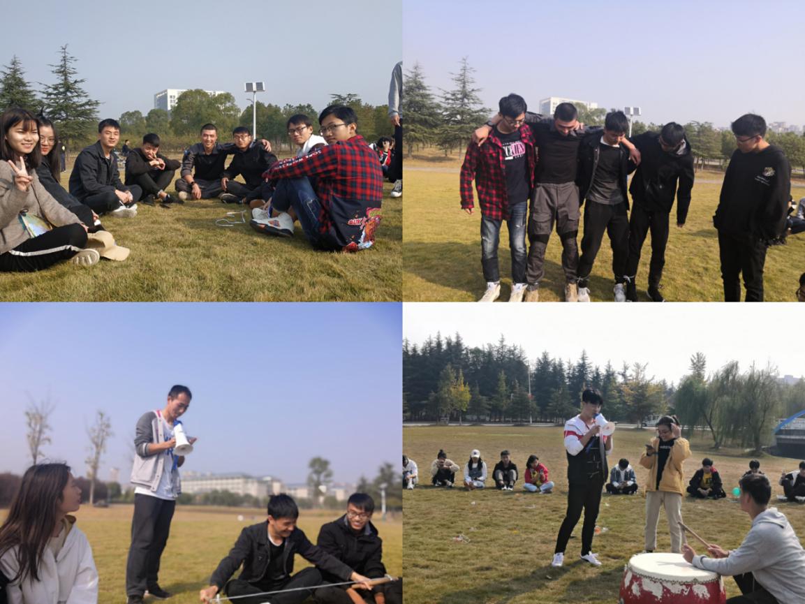活动伊始,组织委员胡稳柱向同学们介绍了本次活动的流程和游戏规则,并将所有同学分为了八个小组。本次活动共有三个游戏,一个惩罚环节。活动第一项,“四人五足”绑腿走,两个班的负责人员分别向八个小组的队员分发绑腿用的的绳子。在小组队员的互相帮助下,同学们都绑好了绳子,个个精神饱满,蓄势待发。当“开始”的口令发出后,同学们口中都喊着“一二一”的口号向前进,都希望成为第一个到达终点的小组。本轮比赛结束后,失败的小组成员每人到盒子中抽取一张附有“真心话”或者“大冒险”的纸条作为惩罚措施,其中有情歌对唱、公主抱转一圈、恶搞电话、模仿明星等,这些小游戏让观看的同学们捧腹大笑,在一个个的小游戏中,同学们之间的距离仿佛也被慢慢拉近了。活动第二项,“踩气球”,每个小组队员都要在腿上绑两个气球,两个小组进行对战,最终留下来的队员所属组即为获胜组。为了不让自己的气球被踩到,同学们在草坪上奋力奔跑,并时刻找准时机进攻,当每组只剩一两个人时,队员们就开始紧张起来,这是一决胜负的关键时刻,虽然这项活动使人耗费体力,但是现场也不乏欢声笑语,同学们都玩得很开心。活动第三项,“击鼓传花”,同学们围成一个大圈,在其中央放上一面鼓,鼓声开始时同学们开始传篮球,鼓声停止时,篮球在哪位同学手上,那位同学就要走到中央抽签决定“真心话”或者是“大冒险”。游戏一开始。“篮球”似乎变成了“烫手的山芋”,在同学们手上传得飞快。上去表演的同学都很配合,似乎有点“不把同学们逗笑不罢休”的意味,现场气氛相当活跃。我们的活动也引起了小朋友们的围观,其中有一位小朋友勇敢地走到中央为哥哥姐姐们唱了一首童谣,得到哥哥姐姐们的一致好评。