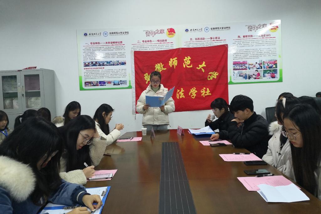 12月20日晚,青年法学社2019-2020年度期末总结大会在英国上市公司365行政楼员工会办公室召开,会长谢歆悦、副会长张露出席,全体部长和理事参加。大会由青年法学社活动部理事朱艺辰主持。