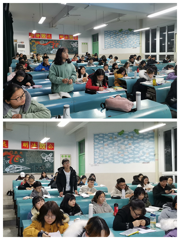 首先,在复习计划制定上,2018级卓越司法班吴梦婷同学,向同学们展示了她期末复习期间详细到分钟的每日复习计划,从早上到晚上学习结束,具体到每一个复习科目,保证了每天的复习效率和复习进度。根据每位同学的具体复习情况,吴梦婷强调复习计划可以每天更新,确保计划的可执行性和适应阶段学习,高效复习。其次,在复习环境选择上,2018级行政管理专业缪雪莹同学告诉同学们,在期末复习阶段,要保持良好的心态和健康的生活习惯,多去图书馆、教室等地点学习,尽量避免在寝室复习,以提高复习效率。正如《劝学》中所说:“君子居必择乡,游必就士”,复习也需要找到合适的环境。卫苏同学结合亲身经历,推荐图书馆、教室、食堂供大家参考,提前预约好相关座位,避免时间的无效浪费.再次,在应试答题方法上,2018级法学1班卫苏同学从不同题型给同学们做了详细讲解。选择题方面,分为单项选择,多项选择和不定项选择。练习选择题可选择竹马法考,瑞达法考,深蓝法考等app或者纸质书。做题时要先分析选项,发现考题中的盲点,通过看书巩固,继续练习,以此循环,吃透每一个知识点。名词解释方面,重点记忆课堂重难点,复习笔记、法条习题上的重点名词。简答题方面,一般考察课本某一知识点内容,比较两个相似知识点的异同。这类题目与后面的论述题相似,但因为是简答题,字数少,每点不必展开,注意分点。建议大家在网上找找简答题答题模式。案例分析题方面,自己要对课本笔记敏感,知道对应的知识点,然后找案例题练手,看标准答案总结答题模式。论述题方面,这类题灵活多变,因此要尽量多分点答题,也要注意条理清晰有逻辑。同学们可以找论述题分析,分析答案,分析结构,总结共性。最后,在考试注意事项上,2018级法学2班李小萍同学谈到,合理的作息饮食在任何时候都是必不可少的,考试需要花费大量的精力,同学们要健康饮食,保证充足的睡眠,“磨刀不误砍柴工”,好的精力是取得好成绩的支柱。