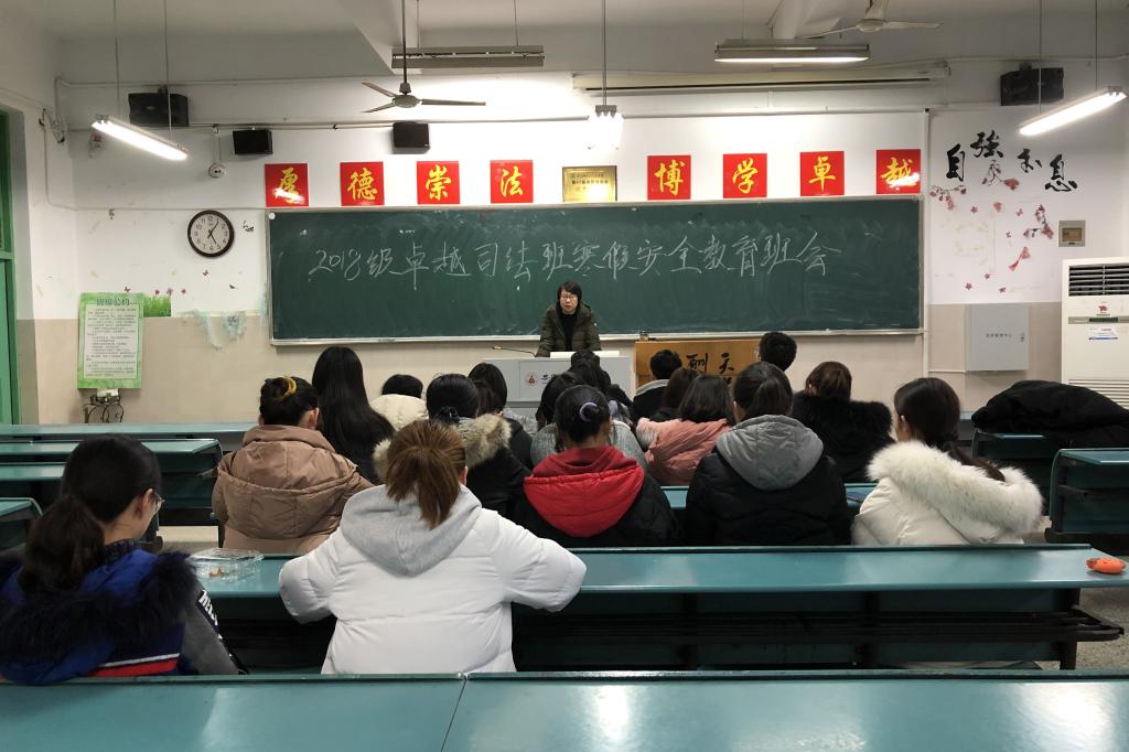 1月10日下午,2018级卓越司法班在行政楼2020404教室召开寒假安全教育主题班会,会议由辅导员王虹圆主持并主讲,班级留校同学到场参会。