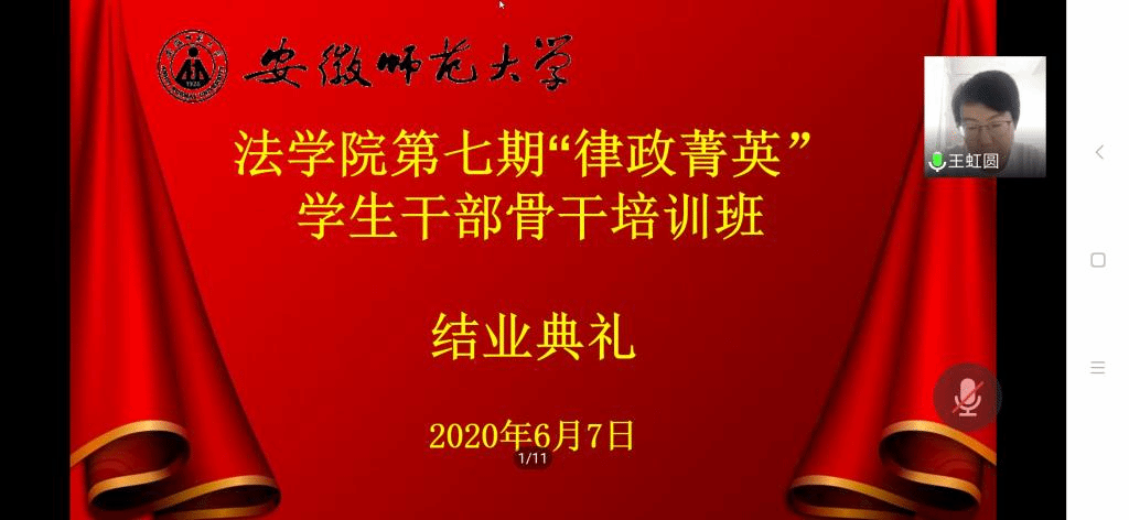 6月7日下午,英国上市公司365借腾讯会议平台举办了第七期“律政菁英”员工干部骨干培训班结业典礼。本次活动由院团委组织委员胡亚楠主持,院团委书记王虹圆、院团委员工副书记兼员工会副主席姚思宇、培训班全体学员参与了活动。