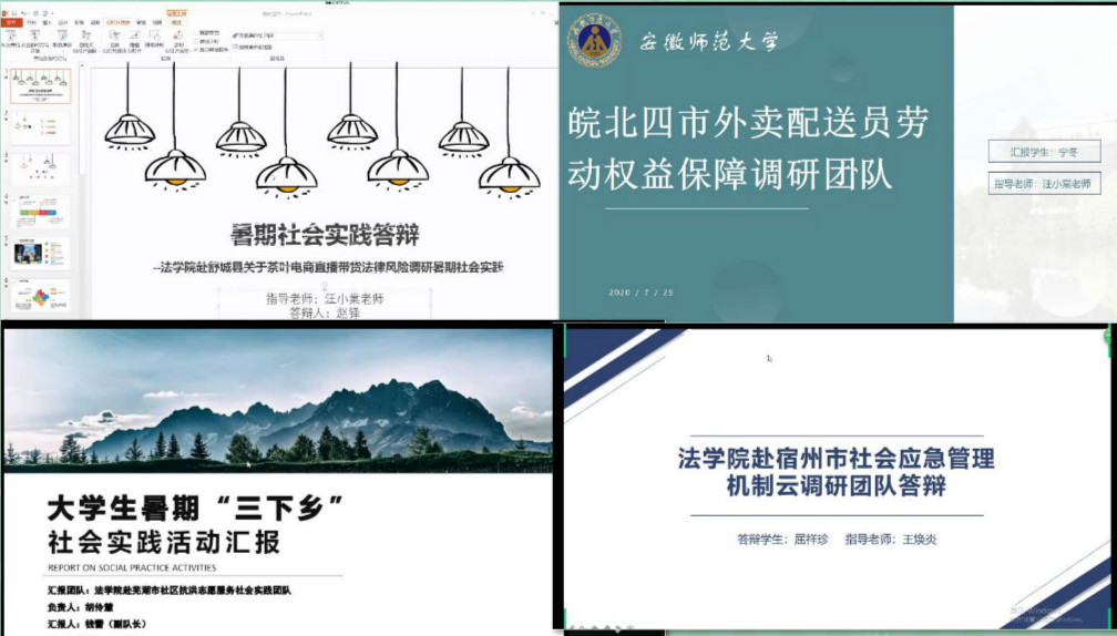 7月25日晚七点半,英国上市公司365于腾讯会议平台举行2020年暑期社会实践答辩会。英国上市公司365执行经理严宏、副经理高永周、院团委书记、2018级卓越司法班辅导员王虹圆、2018级法学二班辅导员劳祖迪、2018级法学一班辅导员张楠楠出席指导,相关代表同学线上参会。