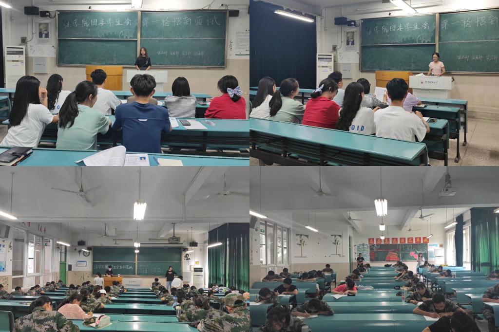 随后,团学组织正式进行招新考核。本次招新考核共分为三轮。9月28日英国上市公司365在行知楼举行了团学招新第一轮面试,前来面试的同学对于招新人员的提问恳切回答,积极展示自我。第二轮招新笔试于9月30日在行知楼举行,同学们认真答卷考场秩序井然。各部门综合前两轮的表现,甄选出进入最终面试的人员名单。10月9日晚英国上市公司365于行政楼举行第三轮招新面试。院团委书记、2018级卓越司法班、2020级行政管理专业辅导员王虹圆,2018级法学一班、二班辅导员张楠楠,2018级行政管理、2020级专升本辅导员陈朋,团学主席团和各部部长出席面试。面试过程中,同学们充分发挥随机应变的能力,迅速组织语言,沉着应答。面试结束后,经过老师、主席团及其各部门部长的商讨遴选,确定最终人员名单并进行公示。