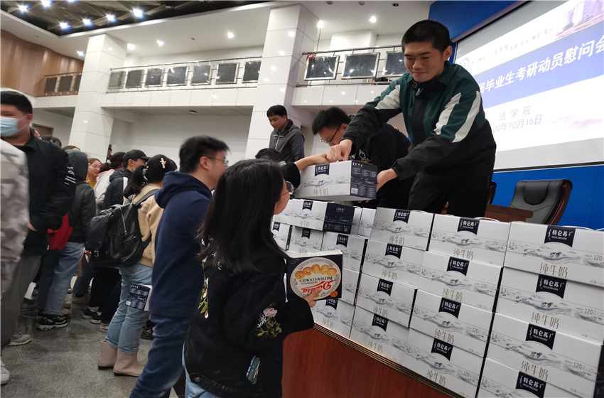 动员会上,严宏从“三个认清、两个坚定、一种希冀”出发,结合自己的亲身经历和以前的考研典型事例,告诫考研学子要认清形势,在考研这场持久战面前要有清晰合理的规划,学会目标管理和战略管理,坚定目标和意志,攻坚克难而赢取胜利。王少仁则结合2020届毕业生的考研就业形势,以生动风趣的语言从考研就业的具体情况、应试技巧分享等角度强调,作为即将毕业的学子应该对自己有清晰的定位、有明确的理想目标,在法考和考研的抉择上应该有所取舍、对未来要有充分和全面的准备。