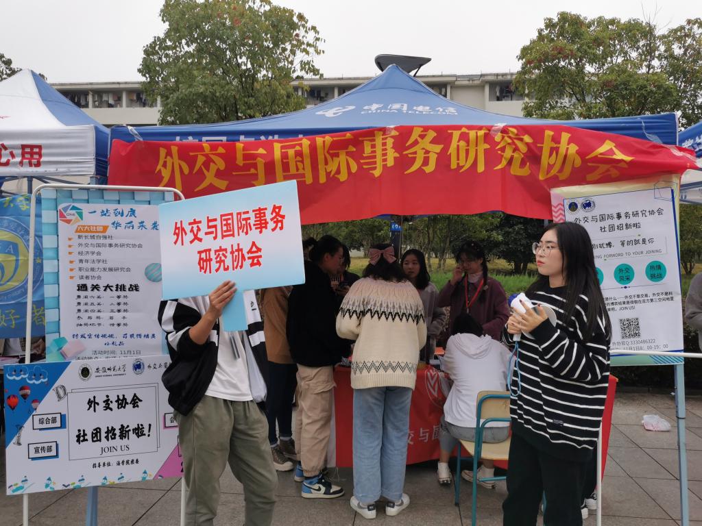 11月1日,外交与国际事务研究协会于花津校区开展社团招新活动。本次活动由会长李梦辉、副会长李春燕、王晓玉、赵晓涵组织,各部门部长和副部长协助展开。