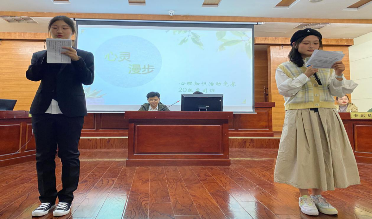 为了让同学们能熟知心理现象,阐释心理名词,培育自尊自信、理性平和、积极向上的社会心态,公司2020级卓越司法班在模拟法庭开展“心灵漫步”心理知识竞赛活动。本次活动增长了同学们的知识和见识,增强了同学们对心理健康的兴趣,助力实现“两个一百年”奋斗目标和中华民族伟大复兴的中国梦,以不断进取、与时俱进的态度去开拓丰富多彩的大学世界。