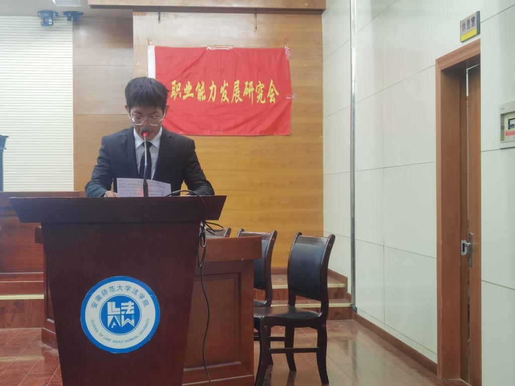 12月5日上午,职业能力发展研究会第十七届模拟政府决赛在模拟法庭举行。本次比赛由社团工作人员邓玛丽、侯爱民主持,特邀陈勇、纪媛媛、王义德、王焕炎老师进行指导。青年法学社会长魏俊、职业能力发展研究会会长朱嘉庆、副会长李娜、外交与国际事务研究协会副会长赵晓涵担任评委,校社联评建组、社团管理部副部长刘江鹏特邀出席,职业能力发展研究会各部部长及理事参加本次活动。