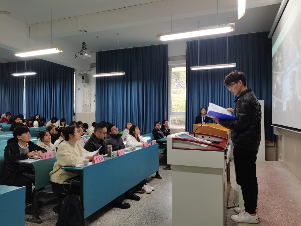 活动伊始,主持人介绍出席嘉宾并宣读活动规则,随后演讲正式开始。“直播带货”、“流量造假”等话题阐述让人耳目一新,“基因编辑婴儿”、“下调刑事责任年龄”等热点探讨发人深省。选手们在向大家展示法律魅力的同时,也锻炼了自身的总结凝练能力和语言表达能力。评委团们秉着公平公正的原则为选手们打下客观的分数。汇报结束后,陆在春为本次比赛进行了总结点评,对选手们的充分准备、慷慨陈词表示赞扬,对比赛的质量表示肯定,同时对大家提出两点建议:一是,演讲核心是亮明观点,观点应具有鲜明性,避免模棱两可的态度;二是,对稿件要熟悉,演讲尽量脱稿,不断训练并有效运用自身的语言表达能力。