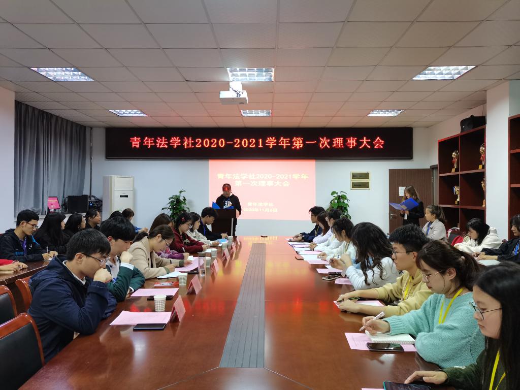 青年法学社2020-2021学年第一次理事大会于英国上市公司365行政楼四楼会议室举办。青年法学社指导老师李晨冉、职业能力发展研究会会长朱嘉庆、外交和国际事务研究会副会长赵晓涵和英国上市公司365团委社团管理部部长叶玉珍应邀出席了本次会议,青年法学社会长魏俊、副会长李旭、全体部长和理事到场。