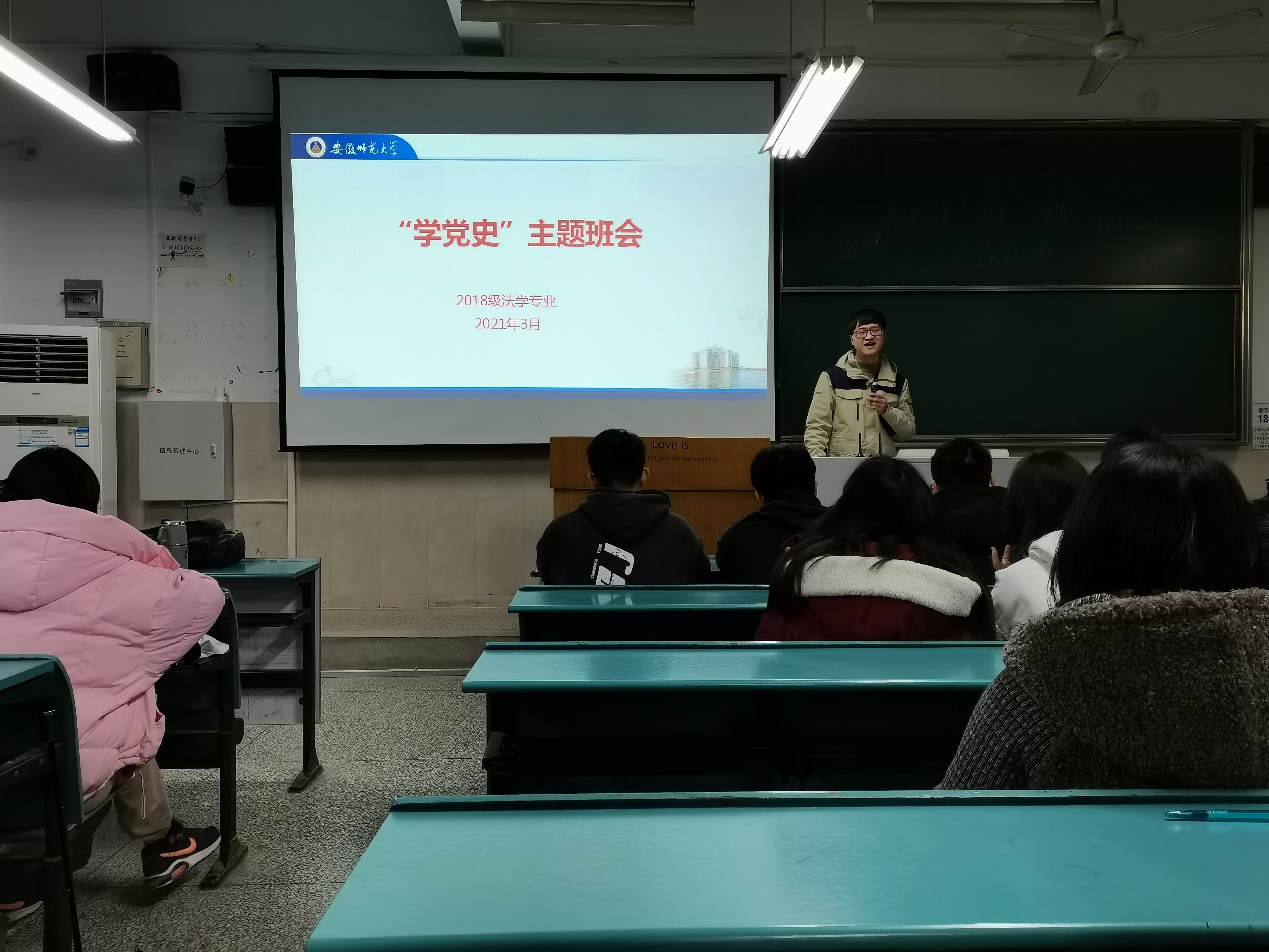 首先,张楠楠从建党一百周年背景下谈起,分别从为什么要学党史和怎么学党史两方面详细介绍了学习党史的必要性和重要性,要求同学们树立正确历史观,深刻领会蕴含其中的宝贵经验和重要启示。张楠楠举出“党史小故事”,以“本领恐慌”为切入口,强调同学们要克服当下的“本领恐慌”,努力学习,增强自身综合实力,全力备战考研和就业。