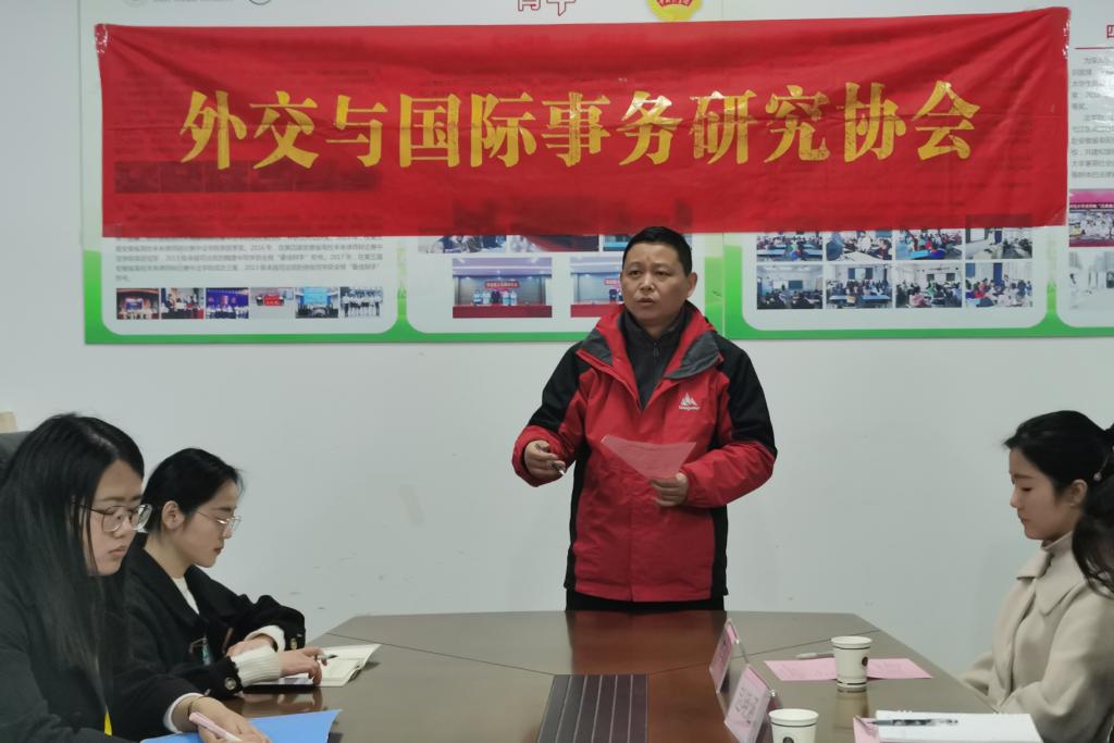 外交与国际事务研究协会于3月19日晚在英国上市公司365行政楼三楼员工会办公室召开2020—2021学年第二学期第一次理事大会,指导老师李路根老师受邀出席。出席此次会议的还有会长李梦辉,副会长赵晓涵、王晓玉、李春燕,各部门部长及理事。会议由宣传部胡凤仪主持。