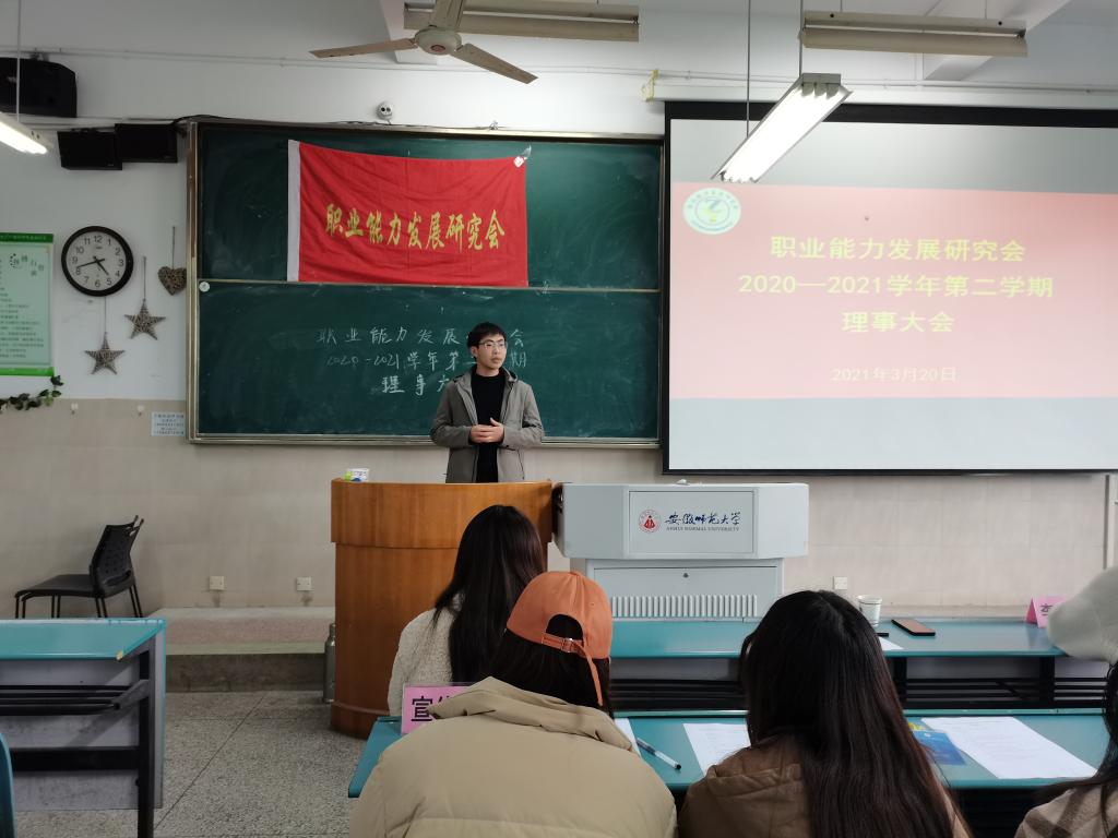 为助力本学期社团工作的顺利开展,320日下午,职业能力发展研究会第二学期理事大会在行知楼2020303顺利举行。职业能力发展研究会会长朱嘉庆,副会长李娜、胡思杰,各部门部长副部长及全体理事出席大会。会议由主持人侯爱民主持。