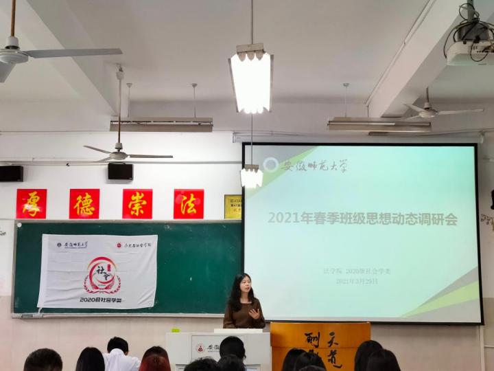 本网讯(刘金金 程冉)3月29日下午,2020级社会学类在行知楼2020404教室召开2021年春季班级思想动态调研会。调研会分思想调研班会、寝室长会议、班委会三个部分进行,会议由辅导员刘金金主持,全班同学共同参加。