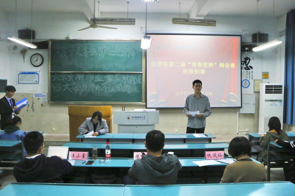 本次比赛采取“一对一”对抗辩论形式,共有开篇立论、双方对辩、总结陈词三个环节。本次比赛共有七组参赛选手。前三组围绕“诚信是靠他律还是自律”辩题展开辩论。各选手准备充分,对辩题精准理解,比赛时立论有据、陈词有力。辩论结束,评委对选手的临场表现予以肯定,同时指出辩论时暴露的逻辑瑕疵和语言表述问题。后四组选手围绕“老员工刚毕业就应该创业还是不应该创业”辩题展开激烈讨论,选手们引经据典,侃侃而谈提出己方观点。对辩时,选手们反应迅速紧抓对方漏洞,用敏锐的洞察力和条理清晰的驳辩将辩论推向高潮。总结陈词时,选手们用精炼的语言升华己方观点。比赛结束评委做总结点评,提示脱稿的重要性,指出选手应做到守辩和攻辩相结合、要以理服人,注重逻辑与思维,切勿过度渲染情绪,更要对突发情况做好预判。比赛共遴选十名选手角逐院级决赛。