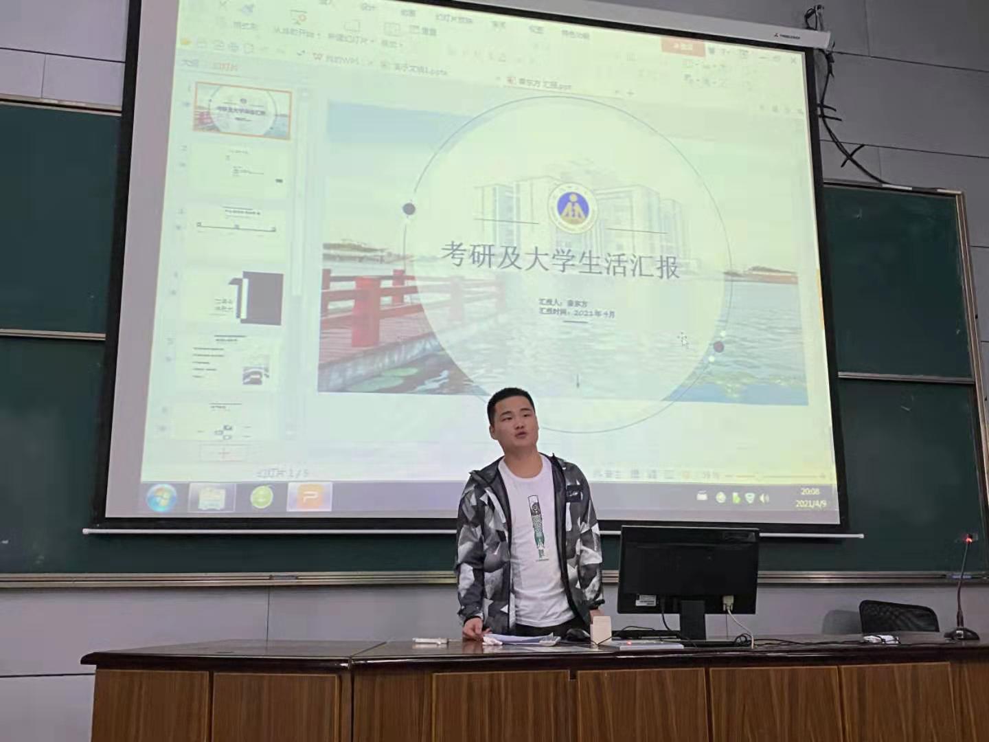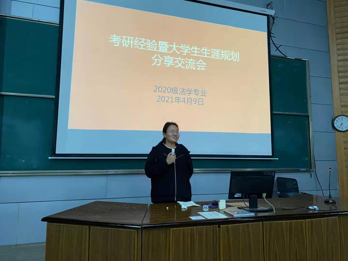 本网讯(英国上市公司365 胡凤仪、崔健)为了鼓励同学勤奋学习,确立奋斗目标,合理规划老员工涯,2020级法学专业4月9日晚在行知楼1号楼103教室召开考研经验暨老员工生涯规划分享交流会。2017级法学一班考研优秀学子许日春、秦东方、蒋锐、余清华分享交流,2020级法学专业全体同学参加。本次交流会由辅导员崔健主持。